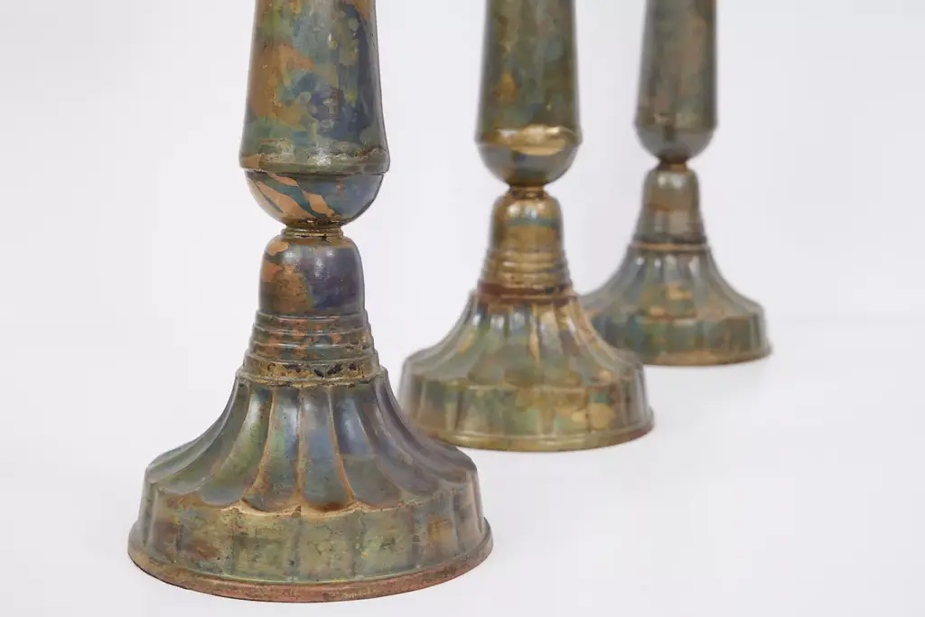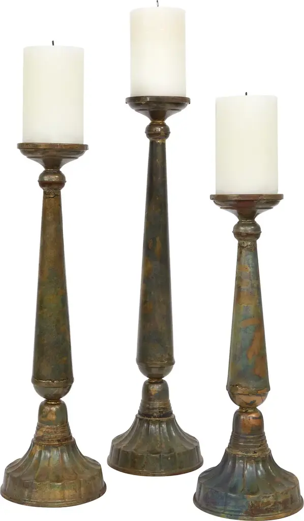 Crafted with iron in a distressed shade of green, our Marcelene candleholders are an elegant blend of vintage and industrial appeal. As the finishing touch on top of your dresser or a flourish of light on your side table, 19, 22 and 25-inch sizes can be styled alone or in a charming trio. Please select your size before adding to cart.