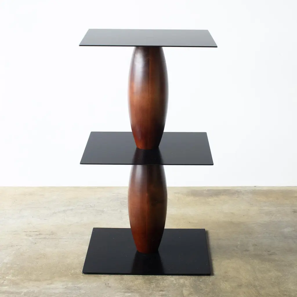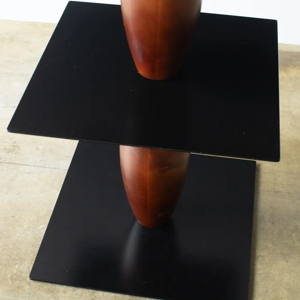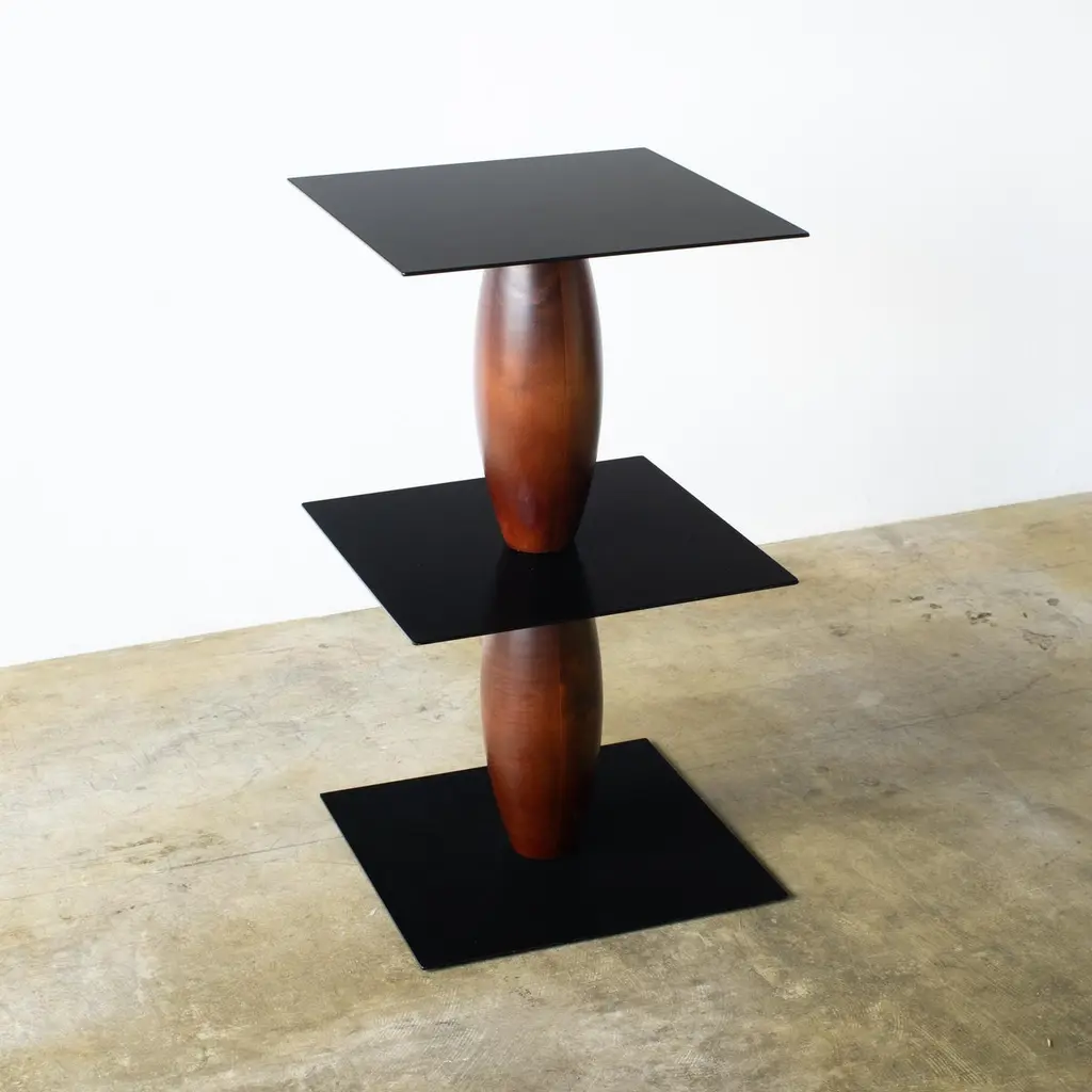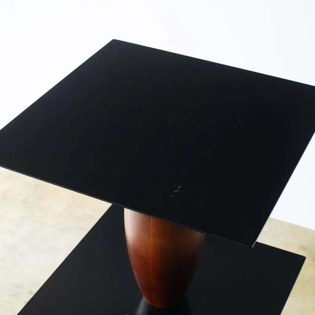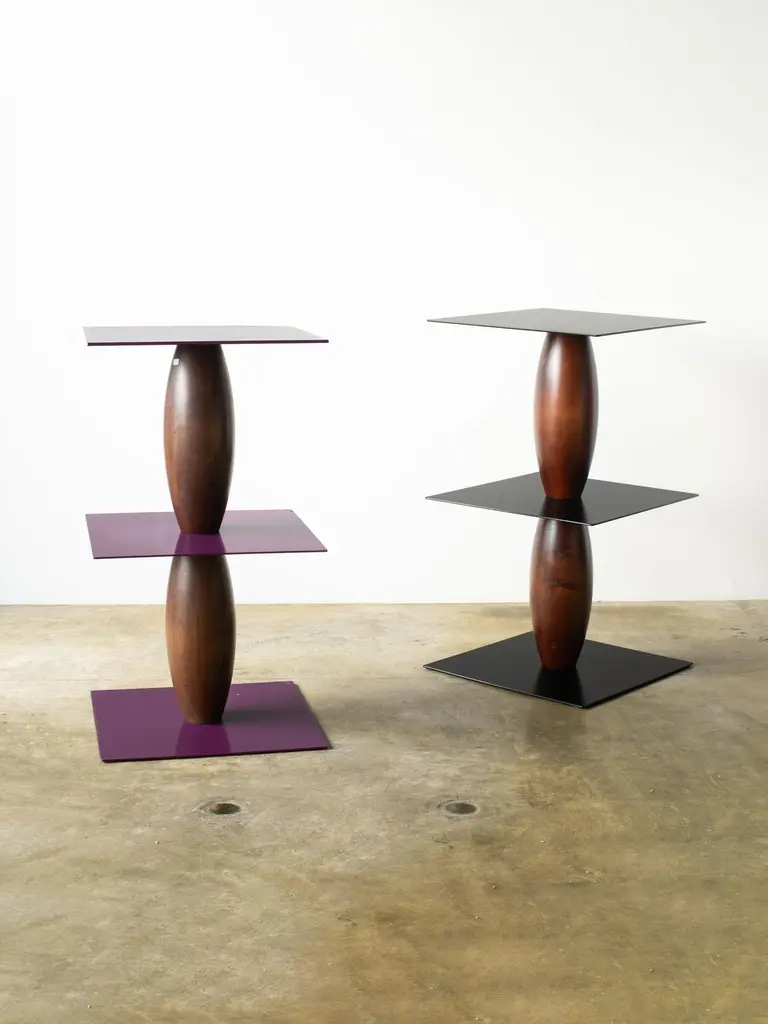 Zanzibar side table designed by Marco Zanini for Bieffeplast. Marco Zanini designed 12 side tables for Bieffeplast around the late 80s. This is one of 12 varietions that Bieffeplast released in those days. Plates are made of painted steel. Pole is made of painted wood. We also have another color violet plates model.