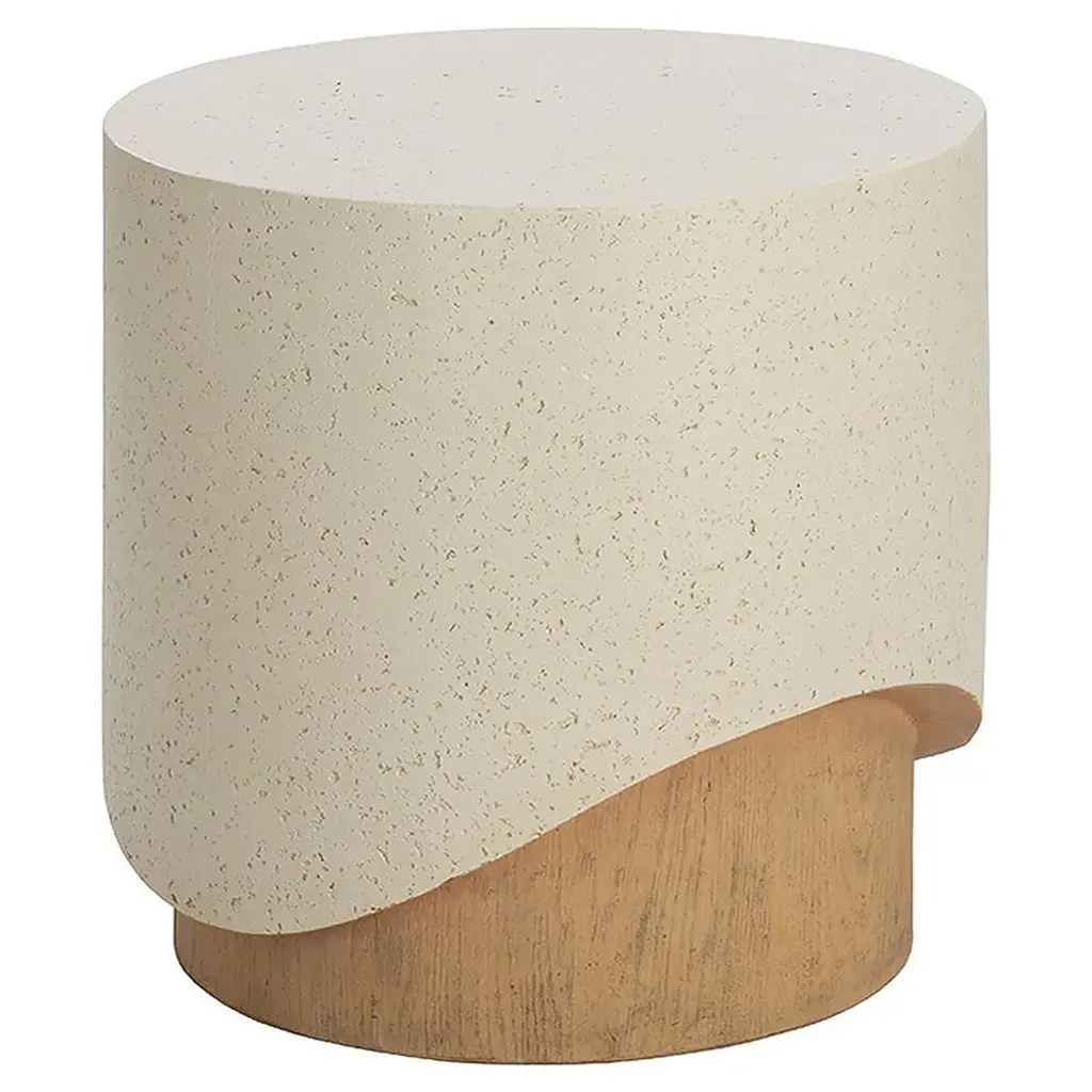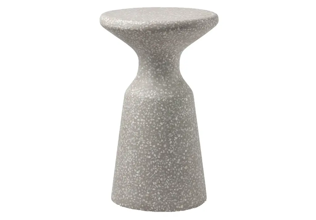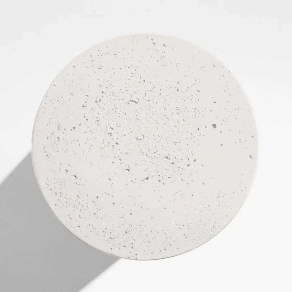 Simple yet impactful, our Marfa side table brings its sculptural presence to outdoor living. The off-white table sets a drum-shaped top on a tapered cylindrical base for a look that's both modern and classic. Rich with unique markings and texture, the table is made of a stone-like mix of concrete and fiberglass that looks amazing with any of our outdoor lounge furniture. Durable enough to weather the elements, the side table can be used indoors or out.