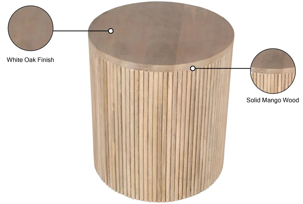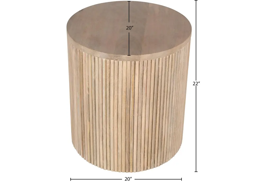 Margaux Modern Natural Wood 20" Round Fluted End Table