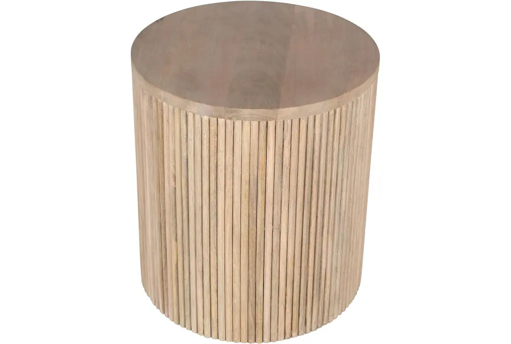The Margaux Modern Natural 20" Round Fluted End Table is a stylish and functional addition to any living space. Crafted from solid mango wood, this table features a contemporary fluted design that adds a touch of elegance to your decor. The natural wood grain variation ensures that each piece is unique, making it a standout in your home. This design also serves as the perfect bedside table.
