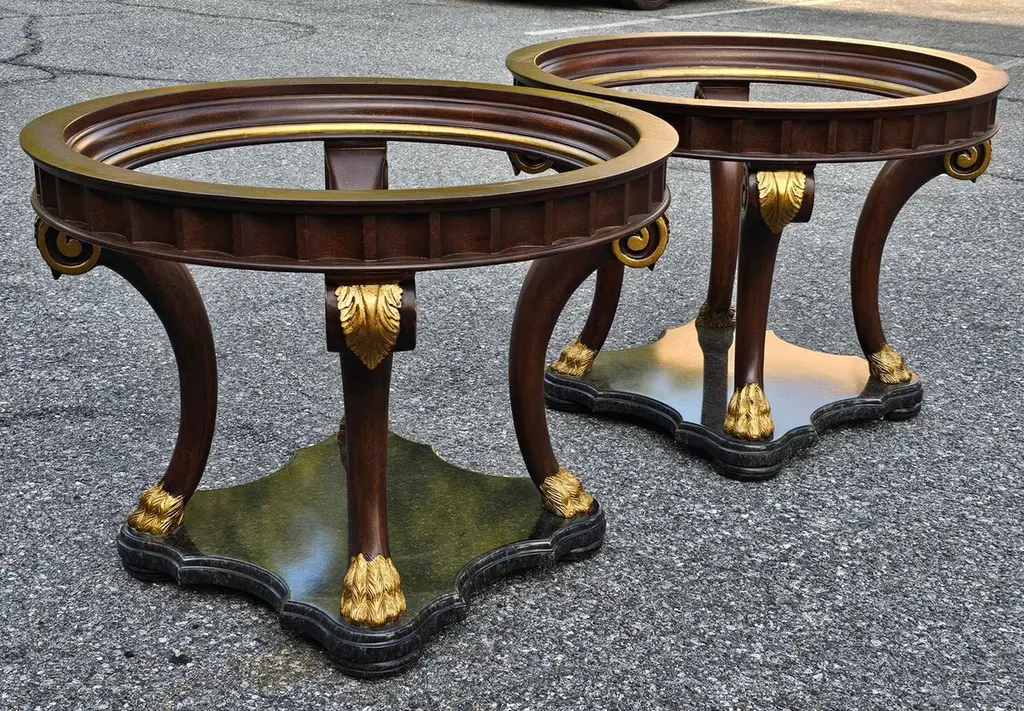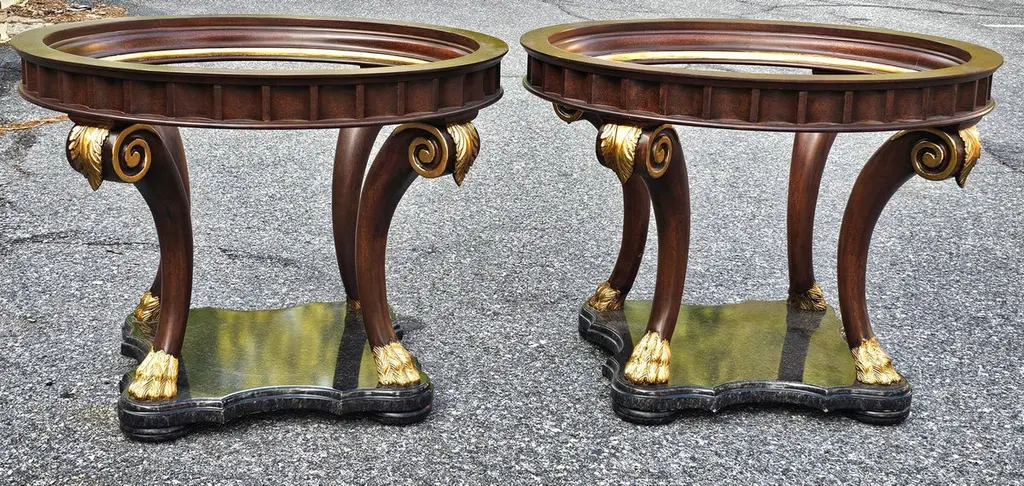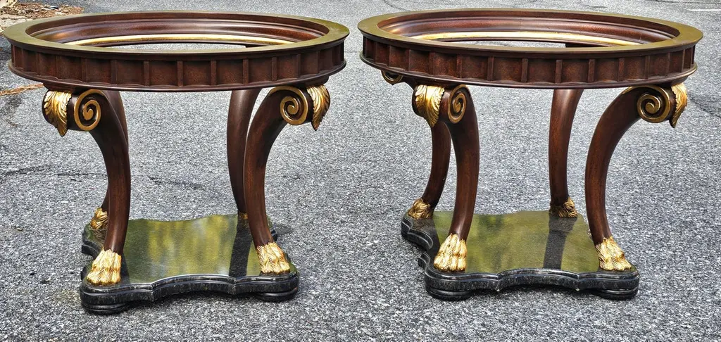 Marge Carson Neoclassical Fruitwood And Partial Gilt Glass Top Center Table