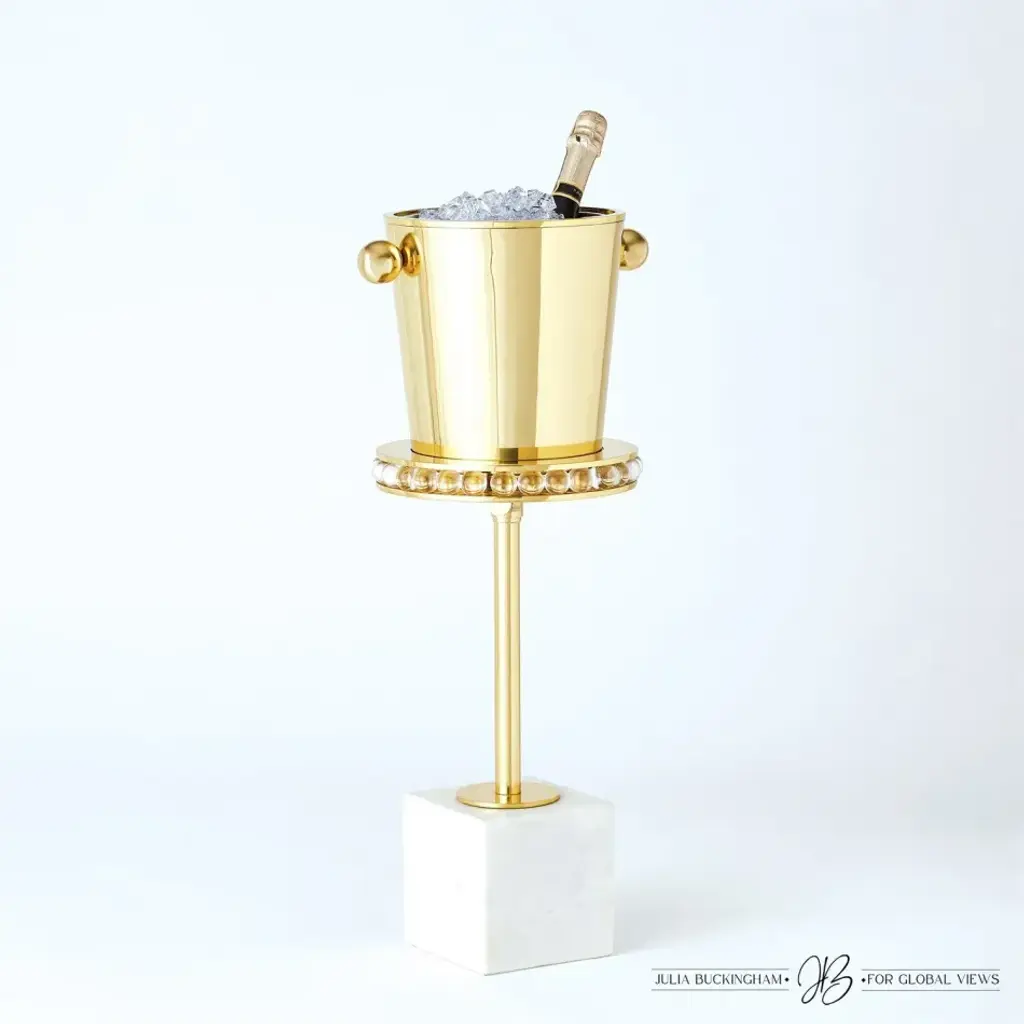 A sleek brass finish paired with a unique profile accentuated by the ball shaped handles gives stylish function to this elegant ice bucket. With a removable stainless-steel insert, the Margot Bucket gleams beautifully atop our gorgeous Margot Side Table. From a fashion forward perspective, Global Views offers accessories, furniture, statement lighting, and an assortment of rugs and mirrors to add beauty and joy to your home.