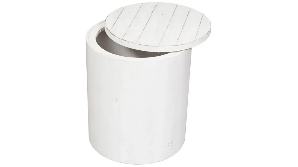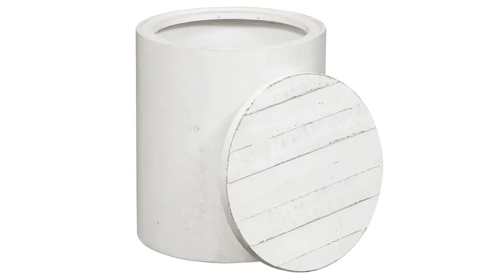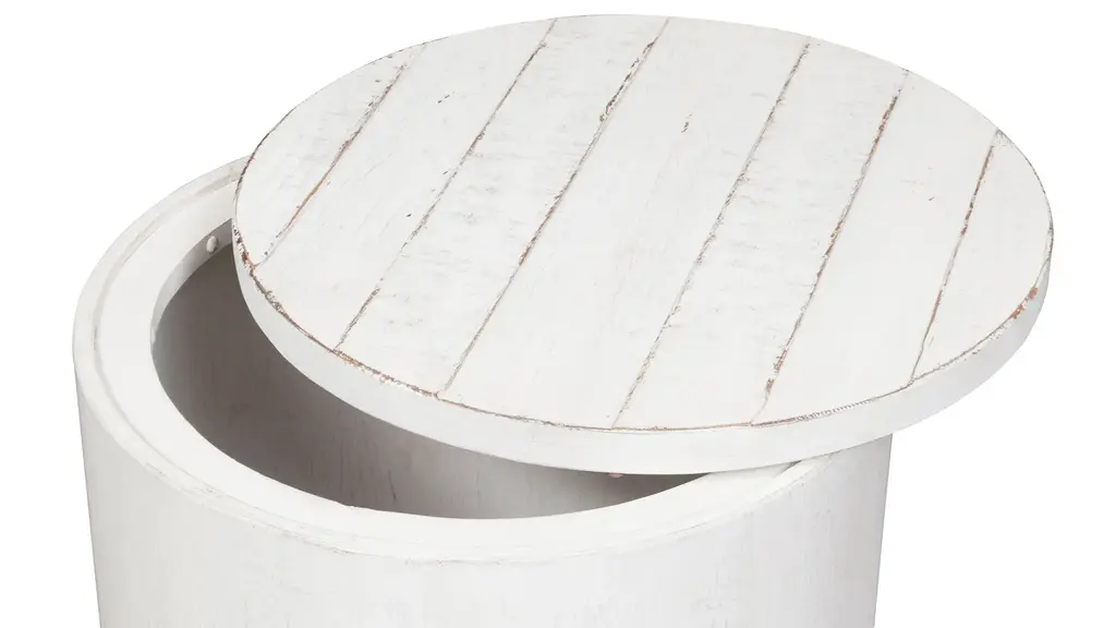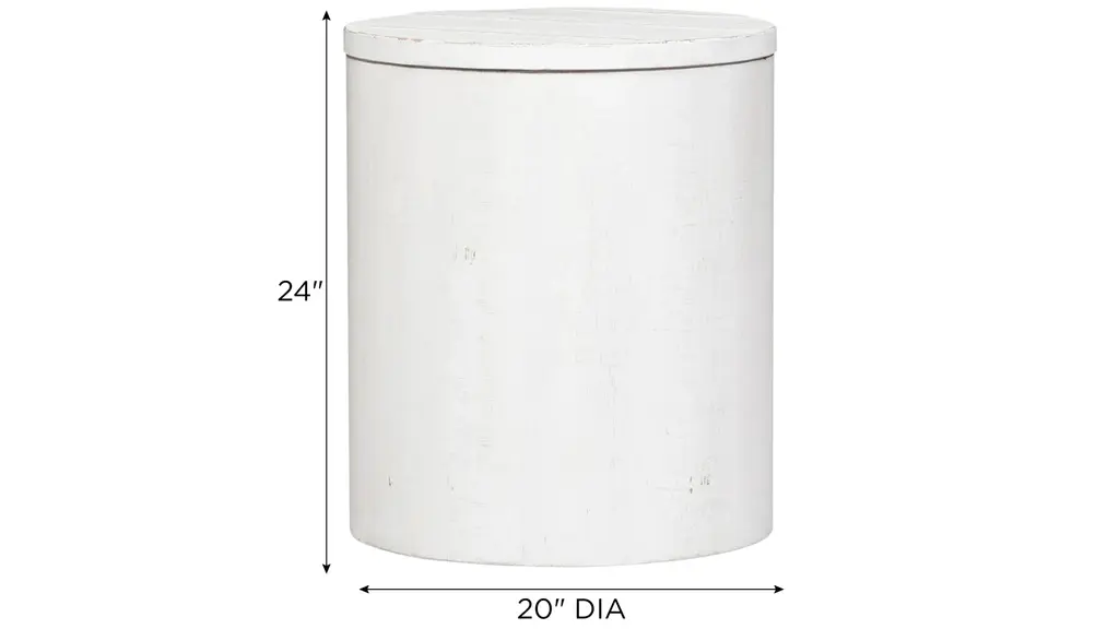 Elevate your space with the Marguerite Drum End Table. Crafted of poplar solids with knotty white oak veneers, this piece features a flea market white finish with heavy distressing and a removable high-low planked top that reveals an abundance of storage. This Marguerite piece would be a great addition to your cottage or contemporary style space.