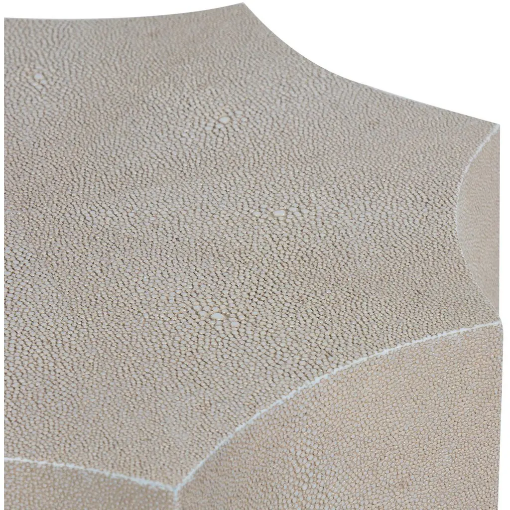 Reminiscent of that famous white dress, the small Marilyn Shagreen Scalloped Table features a fluttering scallop made modern in faux shagreen. With soft dapples and just a hint of grey, this petite beauty pairs perfectly with almost any sofa or accent chair.