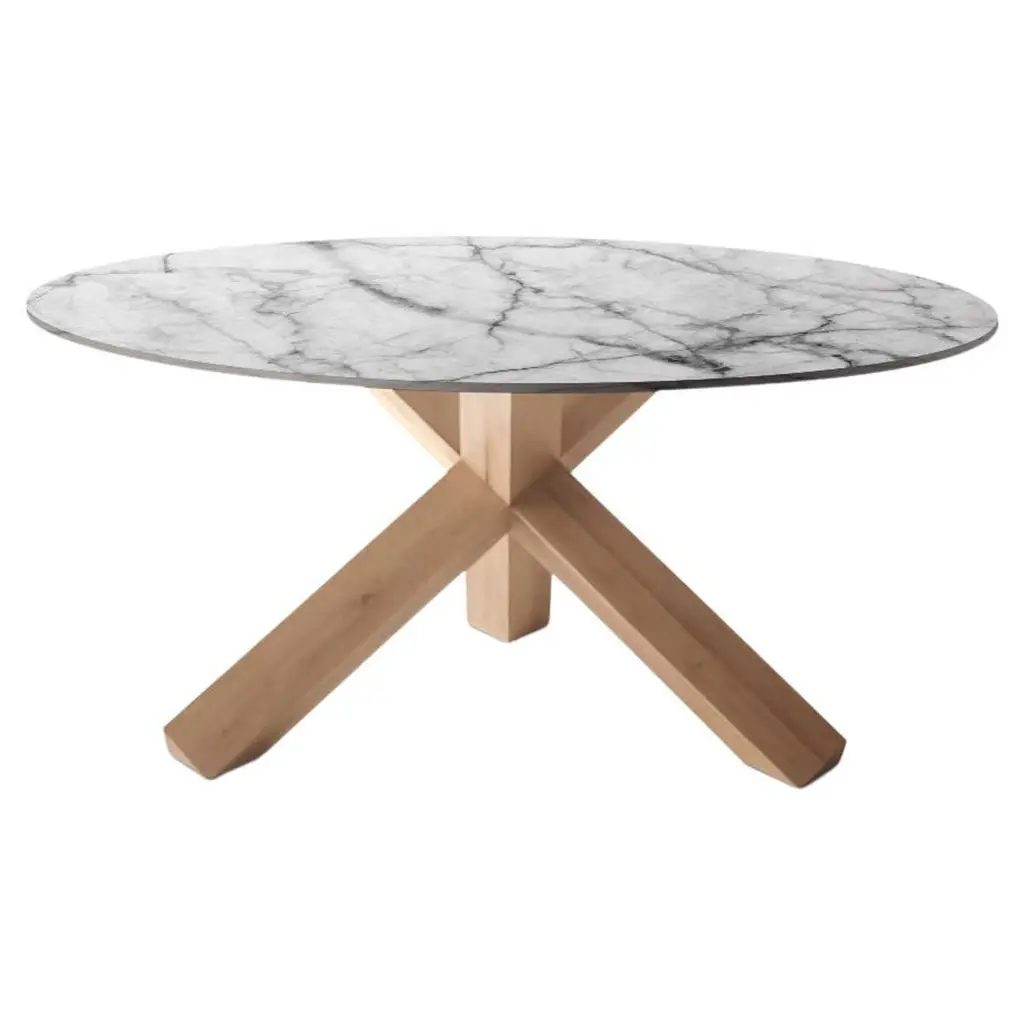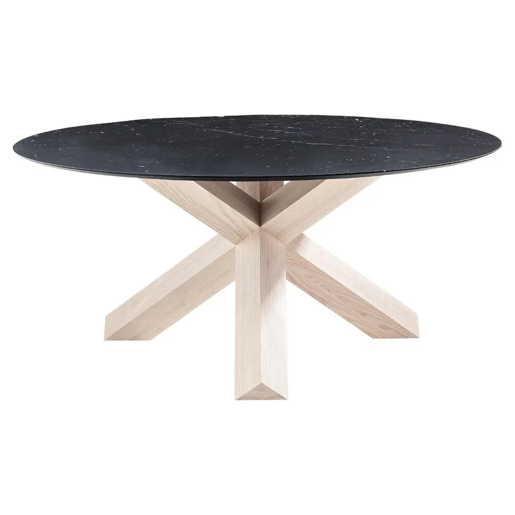 Mario Bellini La Rotonda Table For CassinaA table with timeless design by Mario Bellini, who morphs the natural warmth of the material into an elegant, ageless shape, in perfect balance between aesthetic refinement and technical quality.La Rotonda’s simple sculptural base is distinguished by three square solid wood legs that intersect perpendicularly, interlocking and interpenetrating each other, to effortlessly support the slender top.Available in a wide variety of woods, the round table top can be made in the desired material, ranging from wood and glass to the more recent solutions in white Carrara, black Marquina and brown Emperador marble.TOPWood, clear or smoked glass.BASEWide variety of woods.La Rotonda is a table that transforms the warmth and essence of wood into beauty, featuring a simple, yet sculptural base, consisting of three square- section legs that intersect to perfection to offer a stylish support for the slim-line table top. The joins between these three elements are carved into the wood, thanks to Cassina’s extraordinary carpentry craftsmanship, where technical quality matches aesthetic refinement. The base is available in a variety of woods, with a wooden or glass top, as well as the new additions: white Carrara, black Marquiña and brown Emperador marble.Important information regarding images of products:Please note that some of the images show other colors and variations of the model, these images are only to present interior design proposals. The item that is selling is on the first image.Important information regarding color(s) of products:Actual colors may vary. This is due to the fact that every computer monitor, laptop, tablet and phone screen has a different capability to display colors and that everyone sees these colors differently. We try to edit our photos to show all of our products as life-like as possible, but please understand the actual color may vary slightly from your monitorAbout the Designer:Mario Bellini is an architect and designer internationally renowned. He received the Golden Compass Award eight times and 25 of his works are in the permanent design collection of the New York MoMA, which dedicated to him a personal retrospective in 1987. He was editor of Domus magazine (1985-1991). He has designed countless art, design and architecture exhibitions over the years, both in Italy and abroad: among the latest those at Palazzo Reale with Giotto's masterpieces (2016) and - at the Milanese Museo del '900 - the one dedicated to Margherita Sarfatti (2018-2019). In 2015 the Milan Triennale awarded him the Gold Medal for his career in architecture and in 2017 dedicated a retrospective exhibition to him. The same exhibition that will be organized again in Moscow in March 2019. Since 1991 he is Royal Honorary Designer of RDI. Since the 1980’s Mario Bellini, dedicating himself almost entirely to architecture, has designed numerous kinds of buildings including the Portello Trade Fair district in Milan, the Villa Erba Exhibition and Convention Centre in Cernobbio (Como), the Tokyo Design Centre in Japan, the Natuzzi America Headquarters in the United States, the National Gallery of Victoria in Melbourne, the Deutsche Bank Headquarters in Frankfurt, the City History Museum of Bologna, the Department of Islamic Art at the Louvre in Paris, the new Milan Convention Centre - the largest in Europe - and in Rome-Fiumicino the new international Airterminal T3 has been completed, while the new Headquarters Generali Group in Trieste has just been inaugurated. Projects currently underway are the New Polytechnic School of Genoa (2006-2020), a vast hotel and residential development on Virgin Gorda Island in the British Virgin Island (2018-2020). He has various projects at the design stage, among which, the "Bin-County Project", a new city for entertainment, sport and culture in the Harbin area in China (2018-2023), the new Headquarters of RAI in Milan “Italian radio and television broadcasting studios and offices”, and a large Residential Cultural and Sports Complex “Oasis” in the Gulf Area.About Manufacture:Established in 1927 by Cesare and Umberto Cassina in Meda, Italy, Cassina launched industrial design in Italy in the 1950s, based on a totally innovative approach that marked the transition from artisan production to mass production. With a mindset focused on research and innovation, Cassina combines technology and long-standing artisan craftsmanship. Memory, research, innovation. Cassina blends traditional skills and superior productivity, meticulous attention to detail and passion, uniqueness and experimentation, wellbeing and sustainability. Today, the company continues to address new lifestyles with the creation of complete, harmonious interior decor solutions that embody the best contemporary design for all areas of the home.