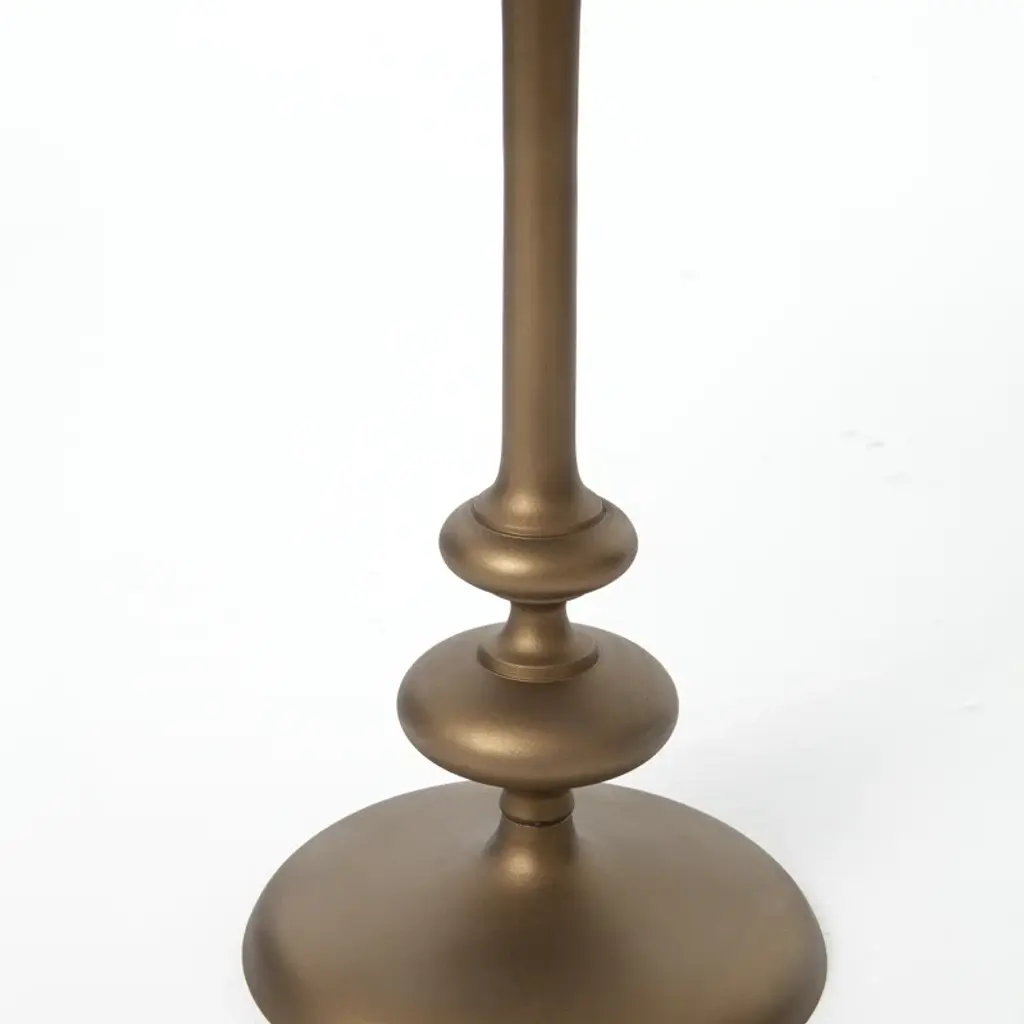This pedestal dining table has a traditional Southern look that makes it right at home in any eat-in kitchen or dining room. This table is made from sturdy metal in an antique brass finish, and has an elaborate turned base for all the charm of a flea-market find. It has enough space to accommodate up to four guests, plus its modestly sized design also works as an end table in your living room. Something to keep in mind: This distressed table requires assembly upon arrival.