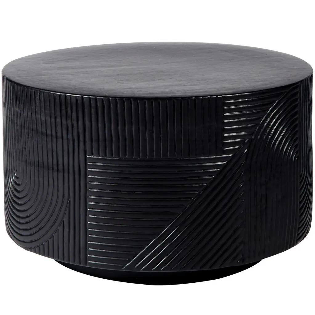 This verstile Outdoor Coffee/Accent Table exudes modern elegance with its simplistic drum shape and textured finish, adding a classic twist to its design. The semigloss finish enhances its polished and refined appearance, making it an ideal accent for both indoor and outdoor living spaces. This cutting-edge collection features handcrafted organic sensuous ceramic pieces, showcasing crystalline glazes that offer "jewel" finishes and ensure strength with durability. Embrace the uniqueness of each piece, as handcrafted ceramics may exhibit small color, glaze, and surface variations, contributing to their character and charm.