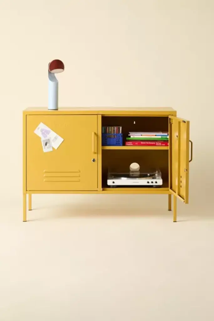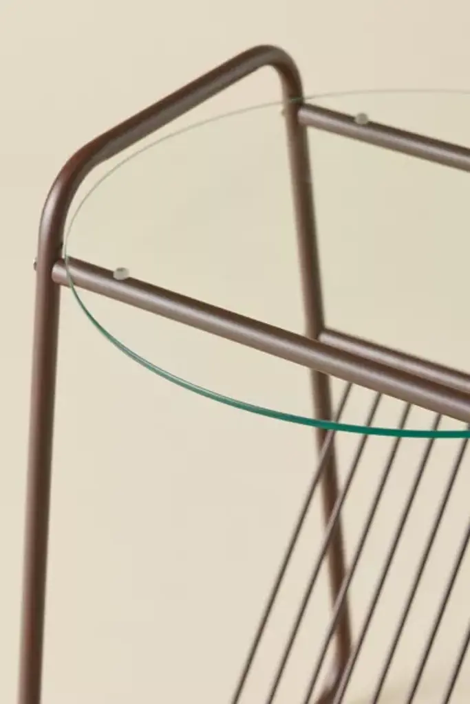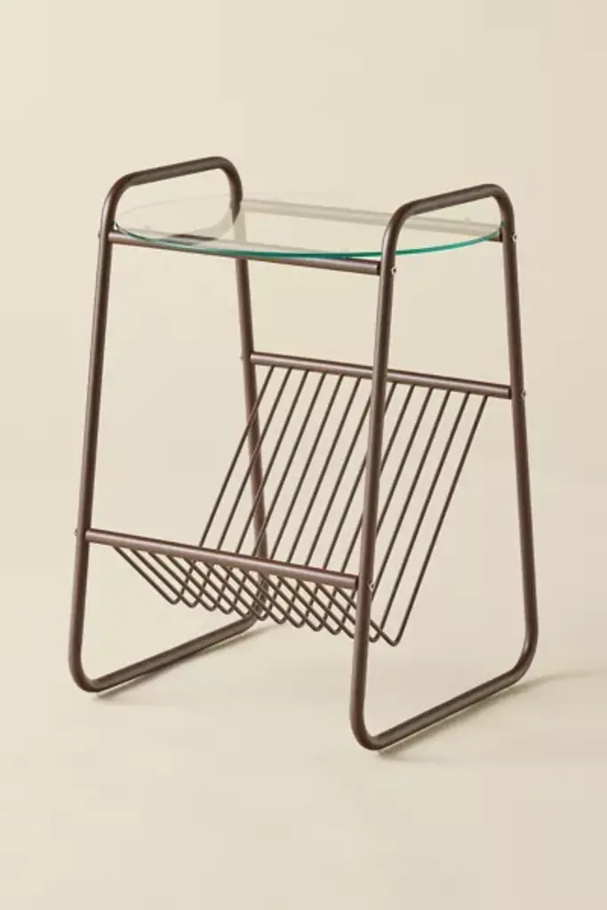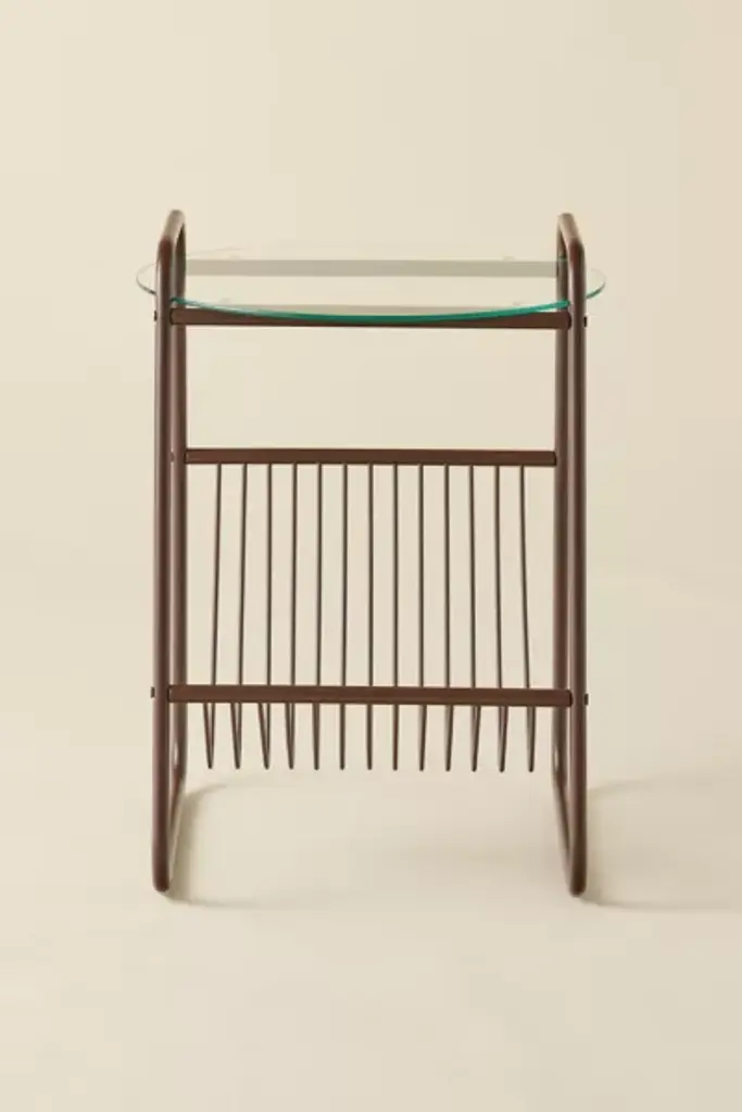 Elevate your record player and vinyl library with this sleek accent table that doubles as a vinyl storage system. Made from tubular iron, this accent table & record stand features a rectangular silhouette with curving legs and a glass tabletop. Complete with a slatted basket at the base to hold your magazines, LP records and more. Available exclusively at Urban Outfitters. **Features** \- Martin Record Player Display Side Table from UO Home \- Iron record stand & accent table in powder-coated finishes \- Slatted basket built into the base to hold your vinyl library \- Glass tabletop to hold your record player, plants & home décor \- Assembly required \- UO exclusive **Content + Care** \- Assembly required - assembly instructions and hardware are included \- Iron, glass \- Wipe clean \- Imported **Size** \- Dimensions: 17.75"l x 17.75"w x 23.5"h \- Leg height: 23.5" \- Space between shelves: 14.6" \- Weight limit: Top: 11 lbs; Bottom: 6.6 lbs \- Weight: 11 lbs \- Shipping package dimensions: 27.25"l x 21.63"w x 9.25"h \- Shipping package weight: 15.4 lbs