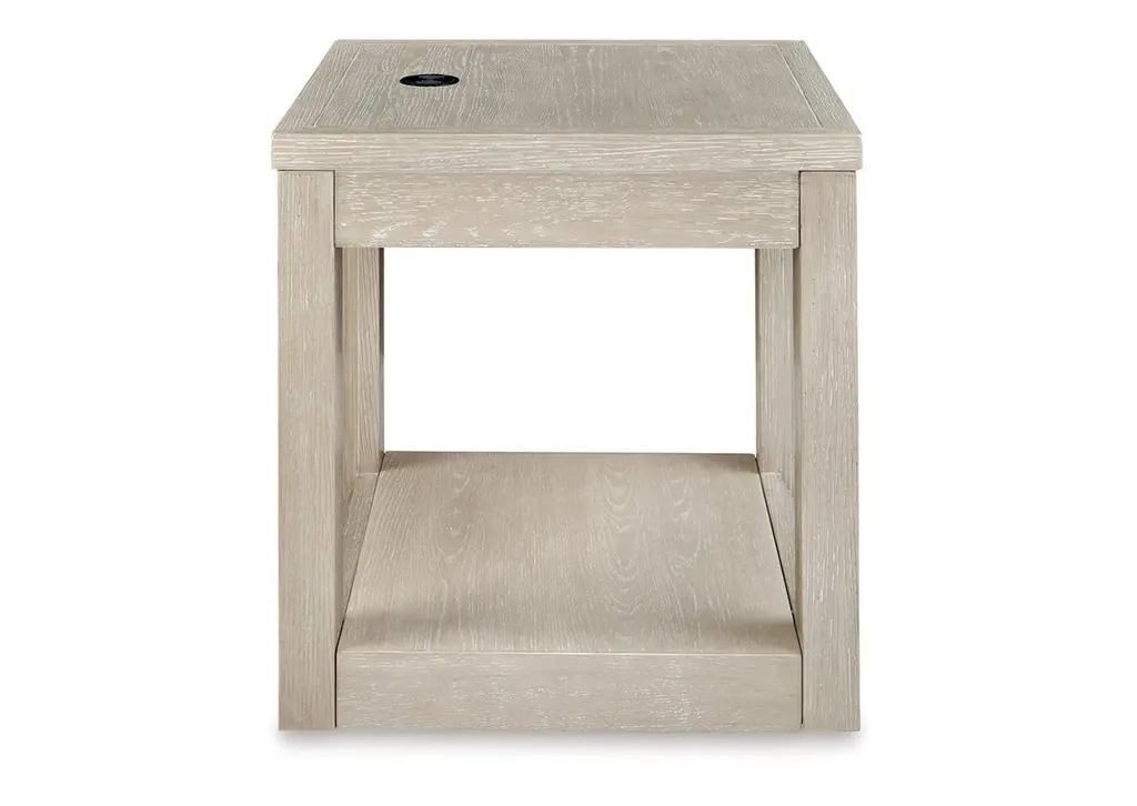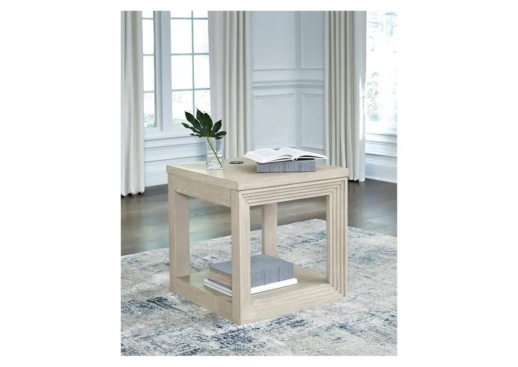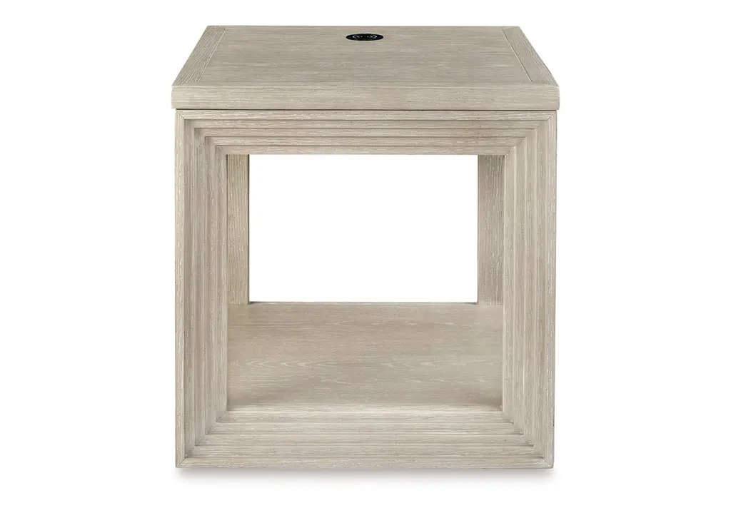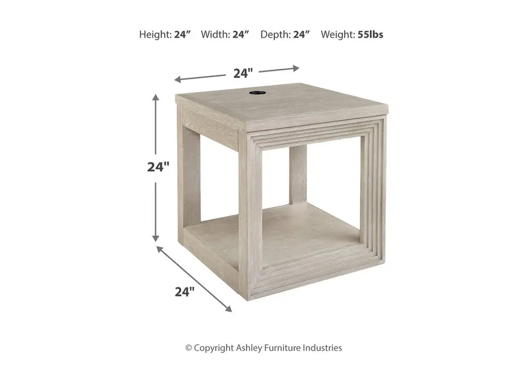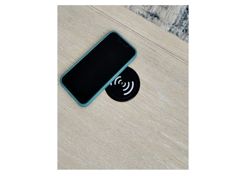 Transitional design takes on a contemporary look with the Marxhart end table. Its trend-right glazed bisque finish elevates your interior space with a clean, modern palette. Add decor to the lower shelf and soak in all of the style. Convenient wireless charging makes this table a modern masterpiece. Weight 55.000 lbs. (24.75kgs.)