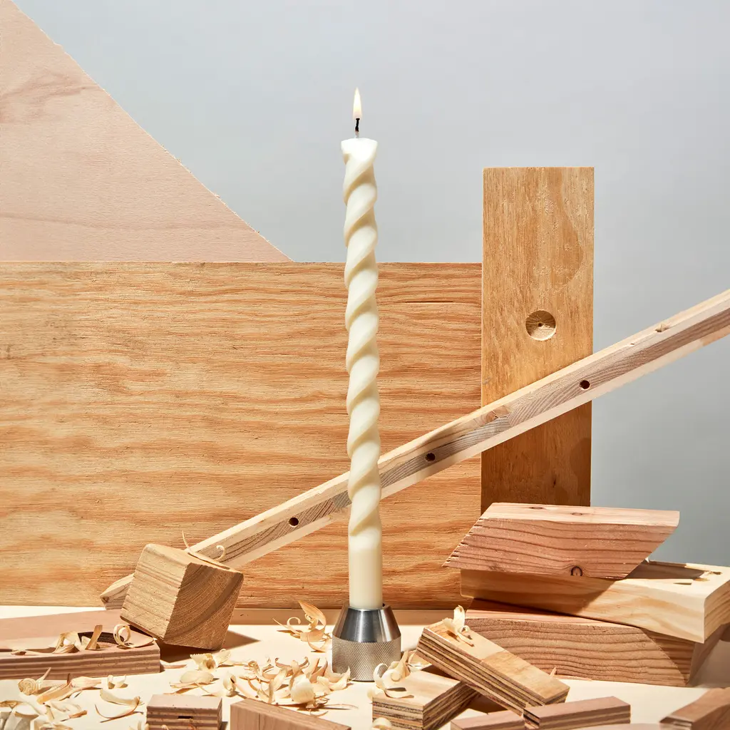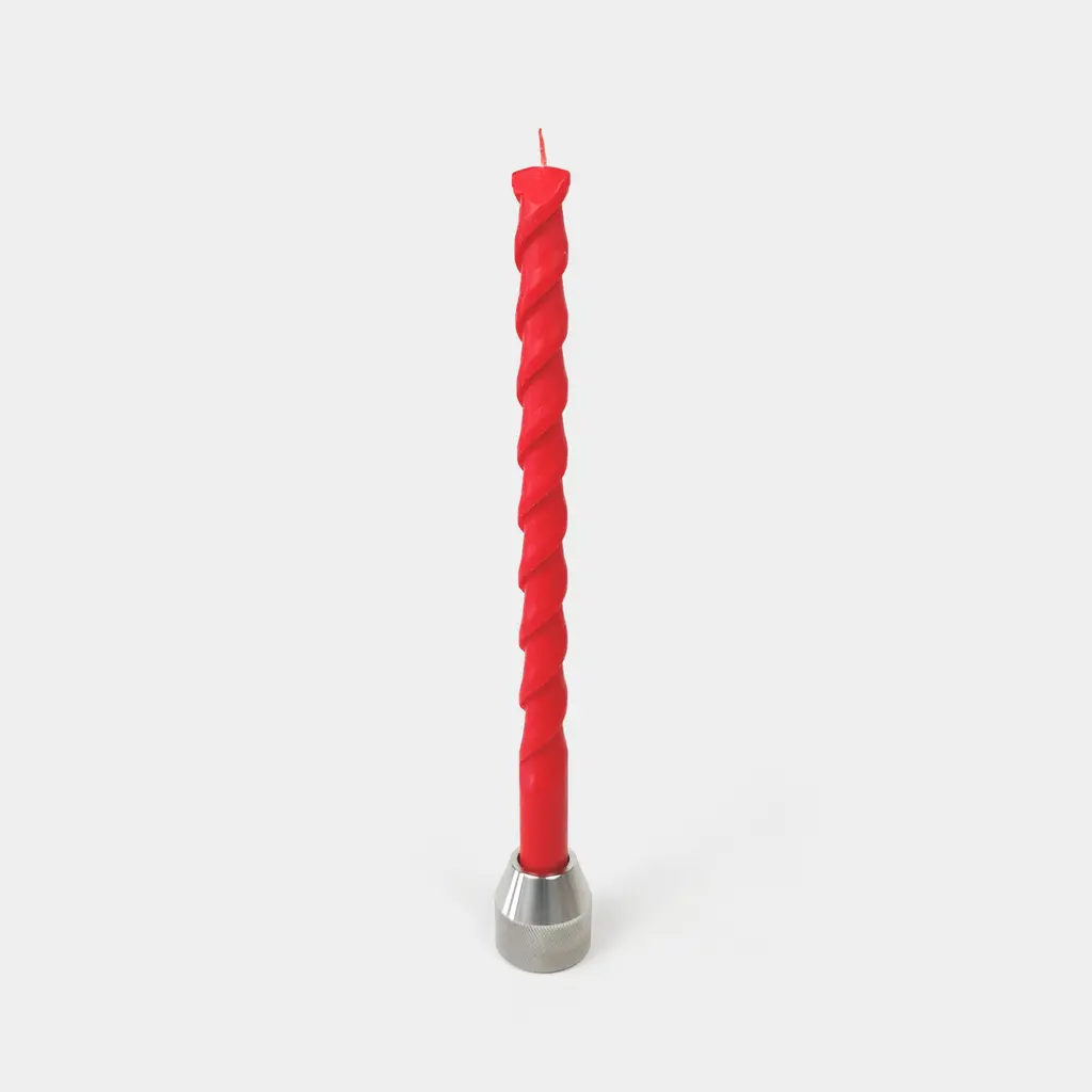 An elegant take on a masonry drilling bit, this modern candle refines the industrial utensil to beautify living spaces. Part of the 54 Celsius collection, the Masonry Drill Bit candle boasts descending grooves and a shallow pitch angle to capture your attention from the first glance. Dynamic and sculptural, this creatively designed candle looks stunning anywhere, whether you want to use it as a centerpiece on a dining tables or as a fun accent on a side table. Like the other candles from the Drill Bit collection, this one is made from unscented wax in a blend of soy and beeswax. Every Masonry Drill Bit Candle comes in a beautiful gift box that is both easily recyclable and biodegradable. Available in Gray, White and Red versions.