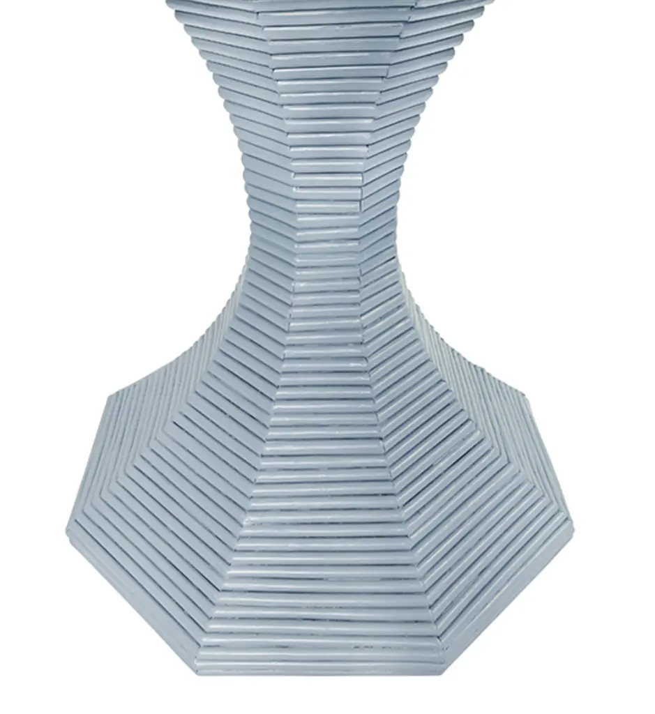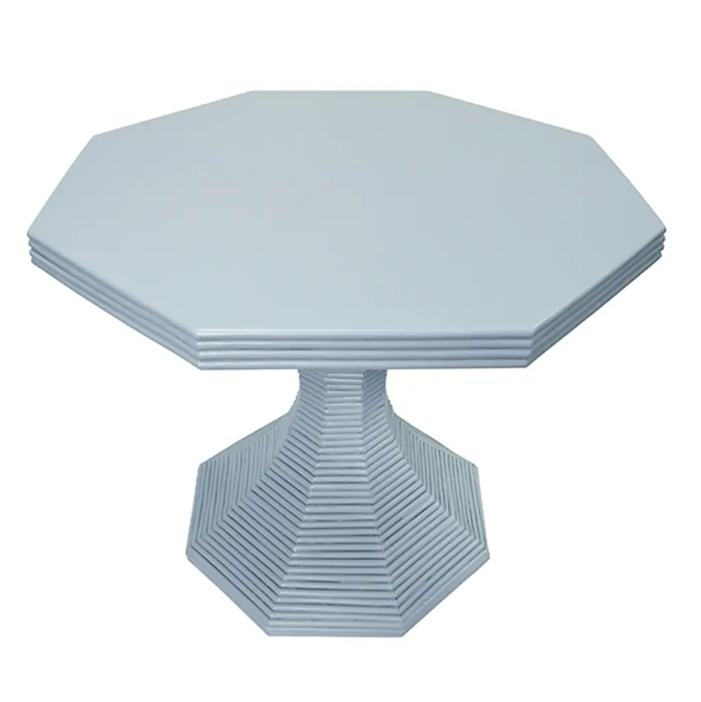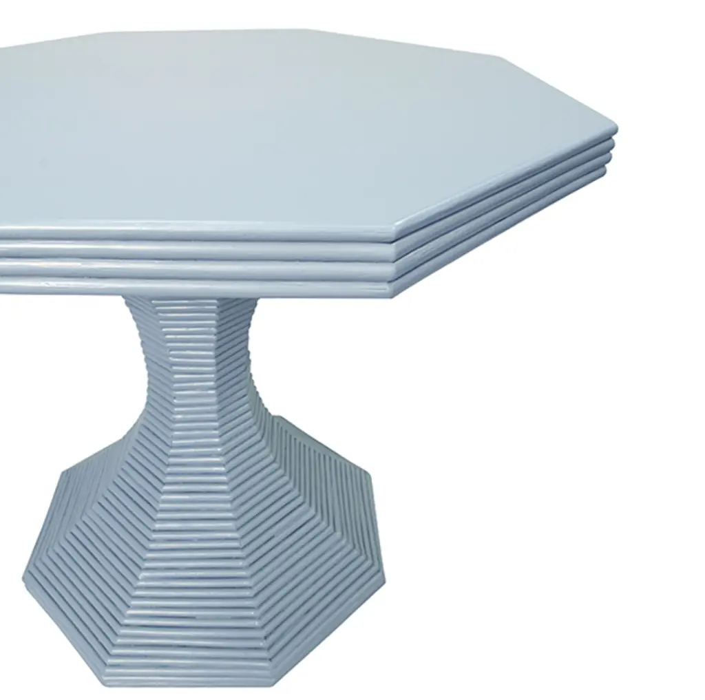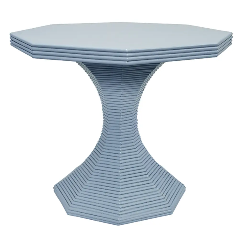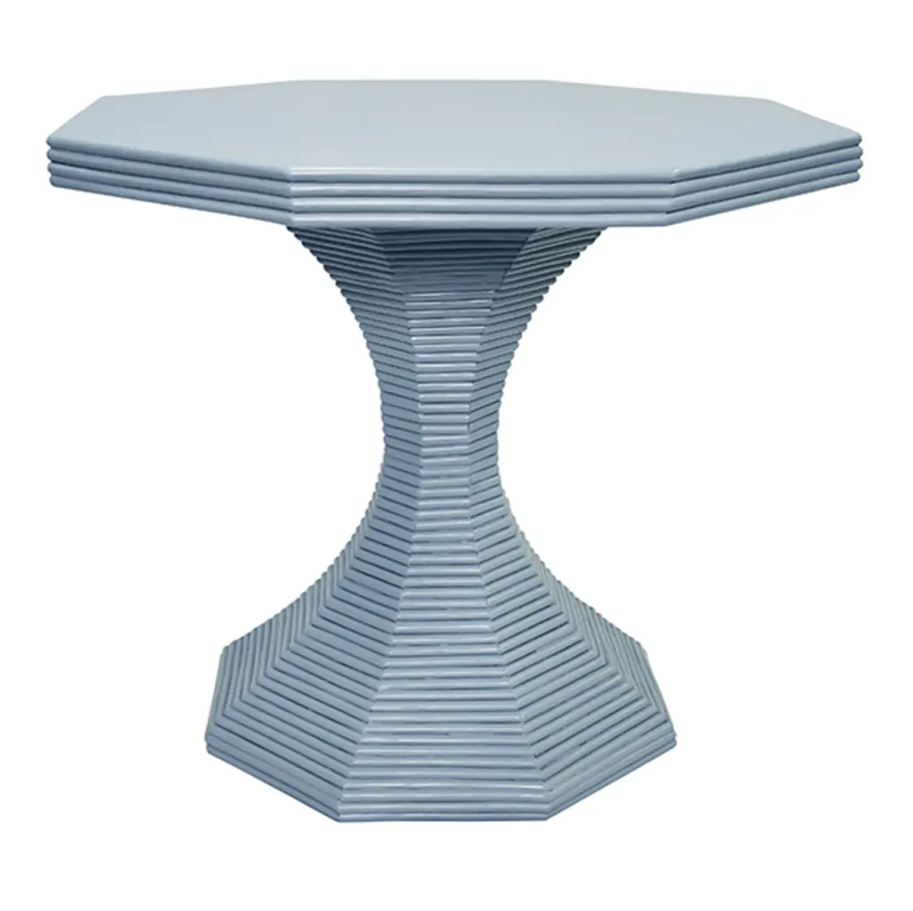 Introducing our Octavia table, featuring a playful octagonal shape and reeded rattan craftsmanship, all painted in a whimsical light blue. This unique piece is sure to add both style and function to your space. 29.5" H x 36" DIA *Rattan has natural variations and may differ slightly between panels. Height:29.50"