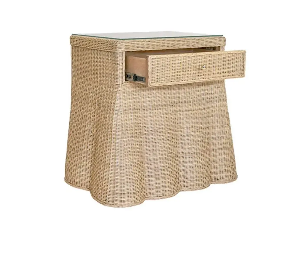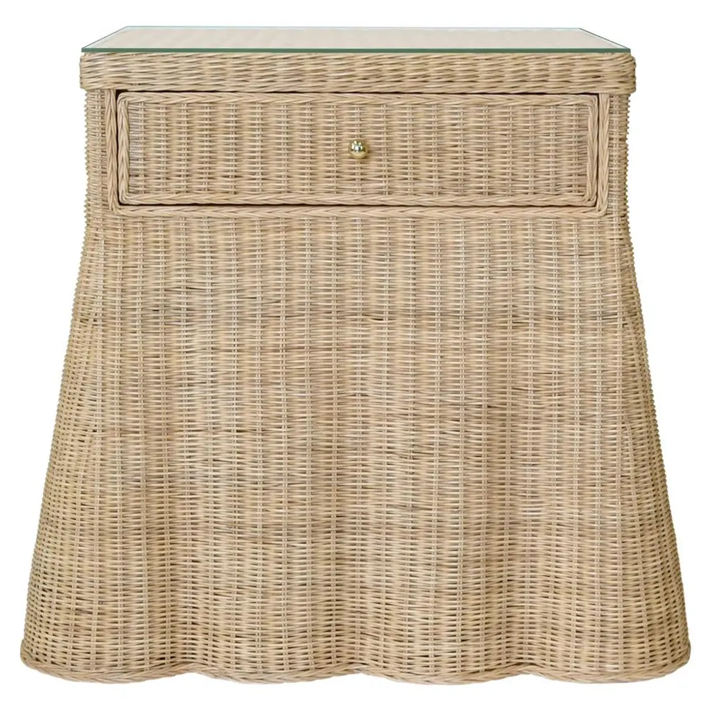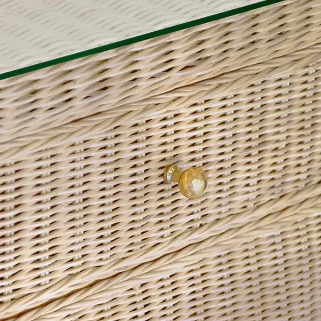 Matthew Izzo Home Rattan Accent Table With Drawer And Glass Top