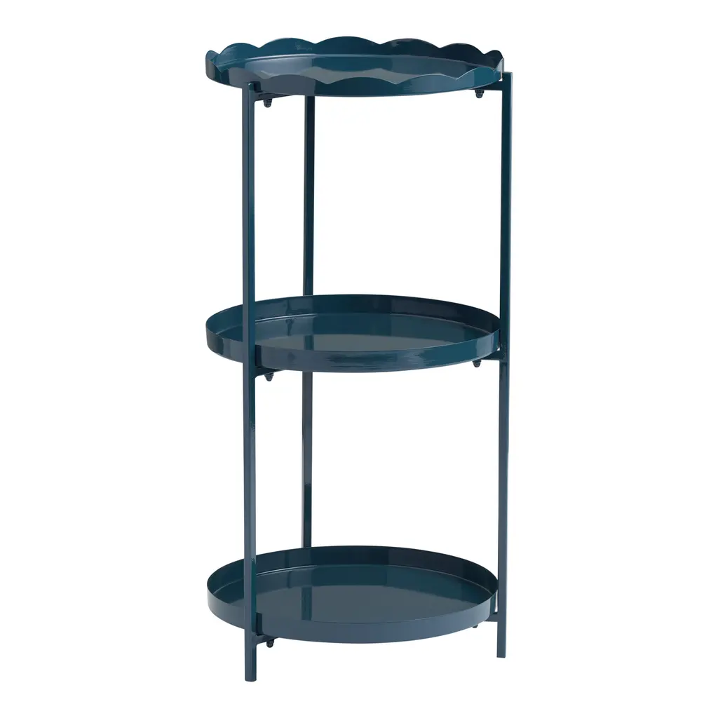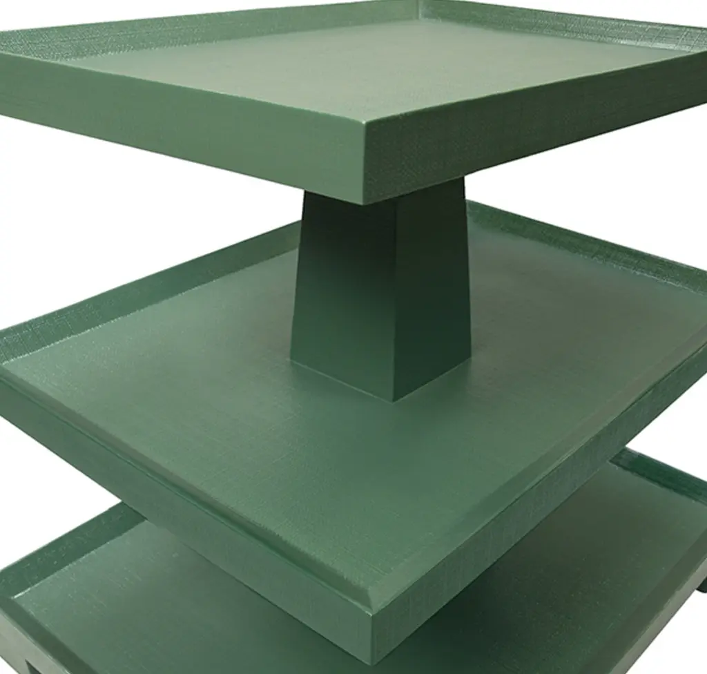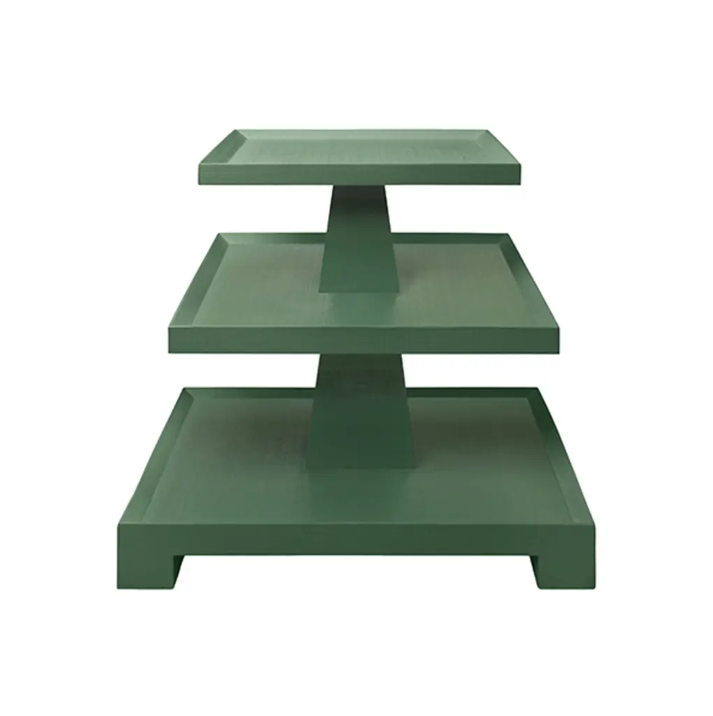 Matthew Izzo Home - Tatiana Textured Green Linen Tapered Three Tier Side Table With Column Center Top 20” X 14”