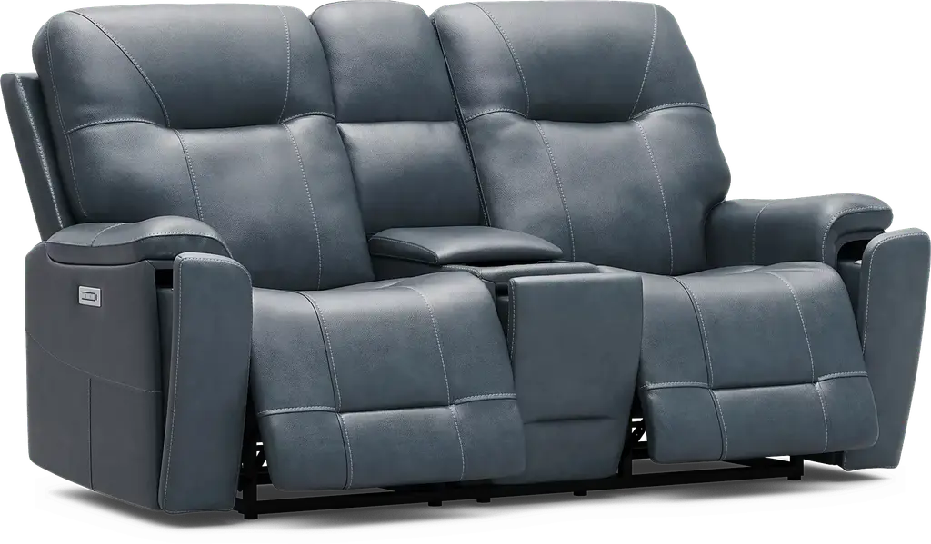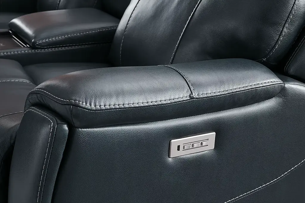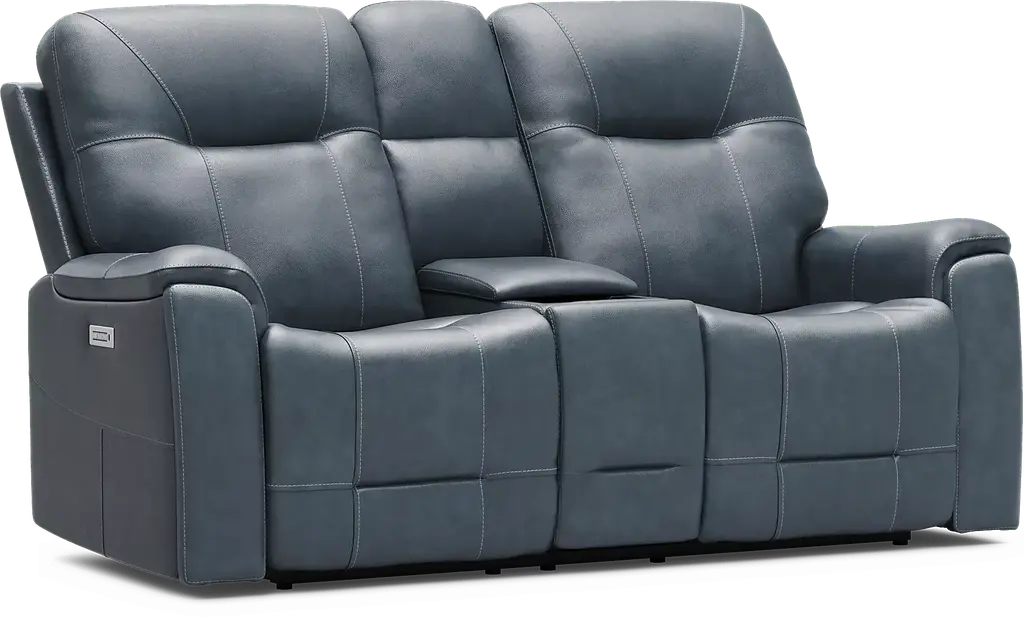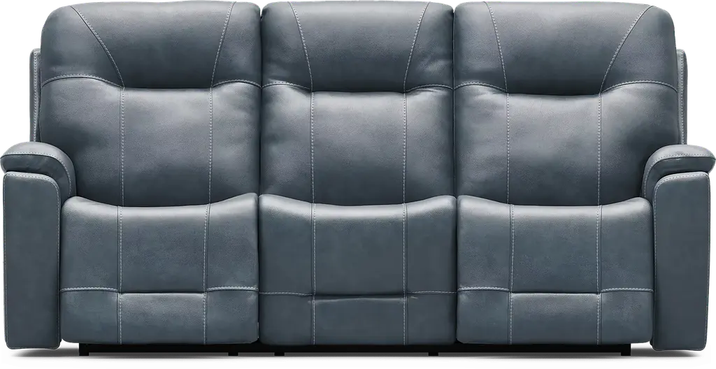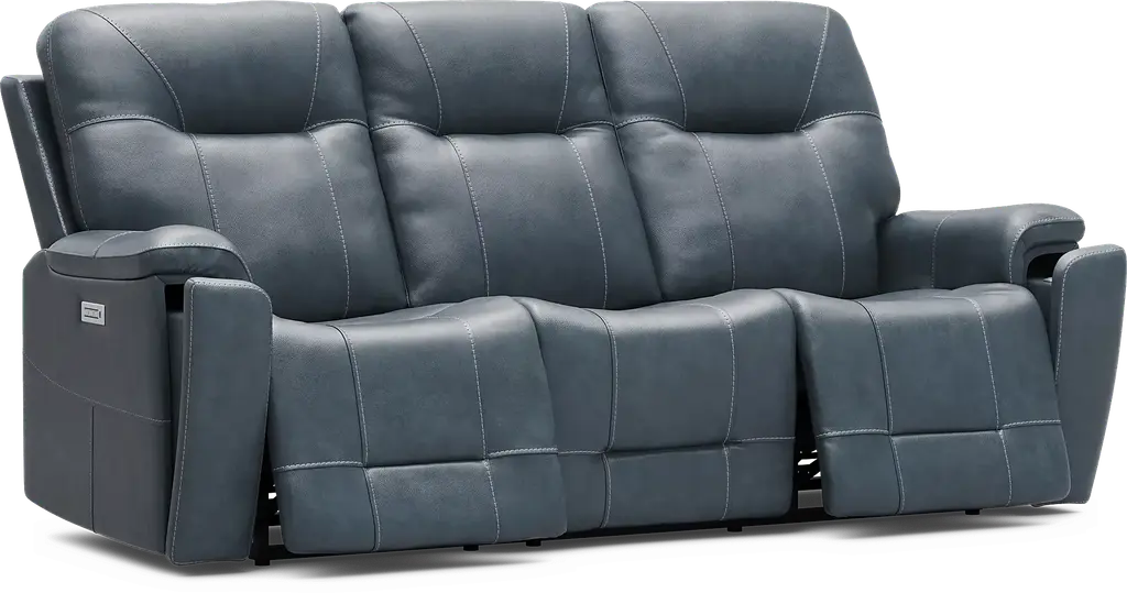Matthews Cove Blue Leather 7 Pc Triple Power Reclining Living Room