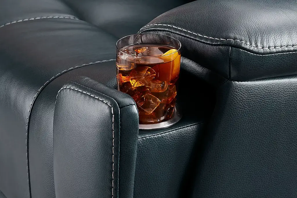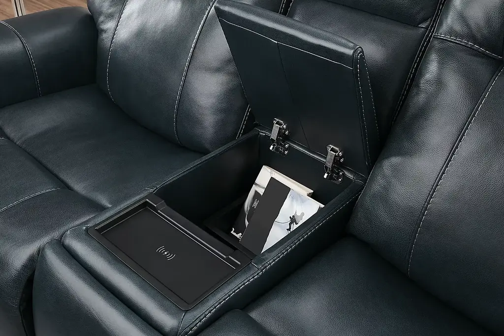 Upscale design with a family friendly flair makes the Matthew's Cove triple power reclining collection perfect for lounging in your living space. Transitional in style and upholstered with top grain leather where the body touches, this set features padded arms and attached seat and back cushions for a luxurious feel. Zero gravity recline paired with the power headrest and lumbar provide the utmost supportive and relaxing, weightless experience. Added features like hidden cupholders, a wireless charging station and USB on switch elevate the cozy feel while the accompanying cocktail table, two end tables and two lamps provide added style. Upholstery: Top grain leather where the body touches and polyurethane fabric sides and backs. Leather is a durable, low maintenance product, however, general regular maintenance is necessary. To keep your leather clean, vacuum it regularly, removing any dust, and clean it with water and a mild non-detergent soap. Tables and lamps not as shown in room image. Accent pillows not included.
