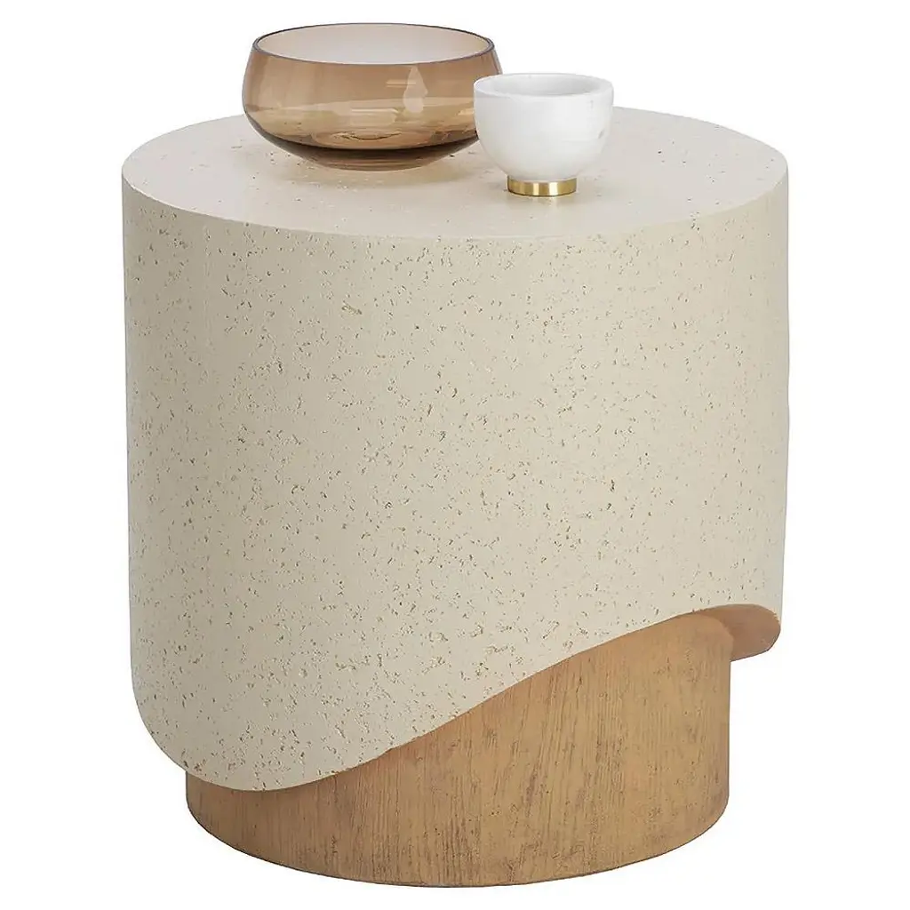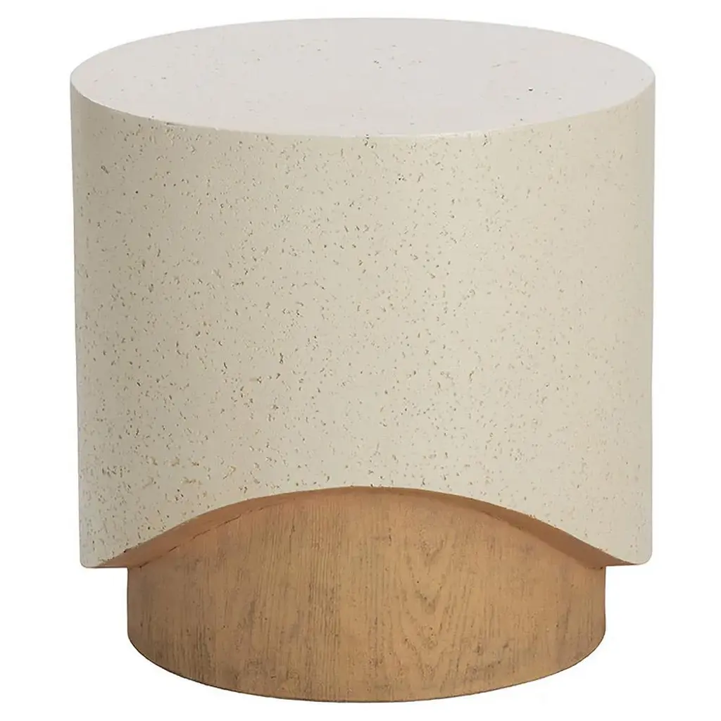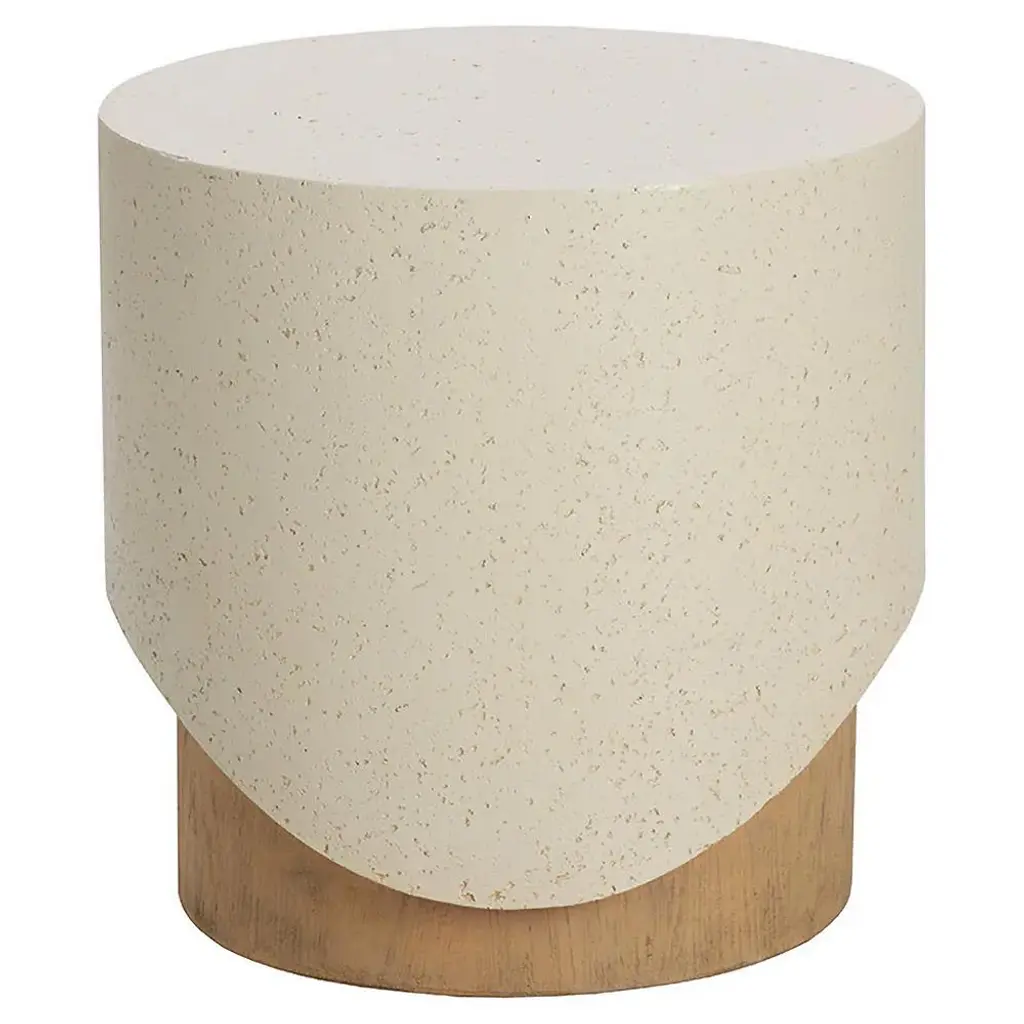 Maureen Modern Cream Concrete Round Drum Outdoor End Table