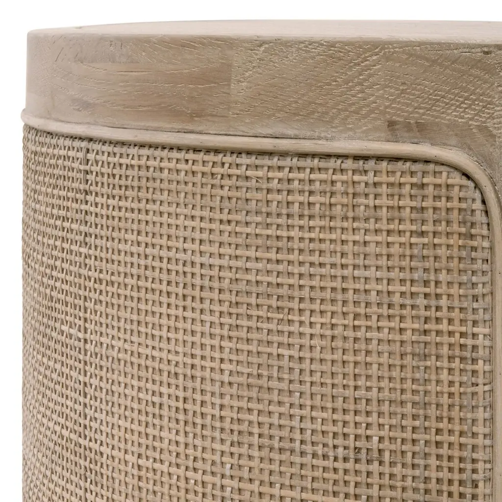 Maverick Round Cane Side Table, Smoke Grey Oak