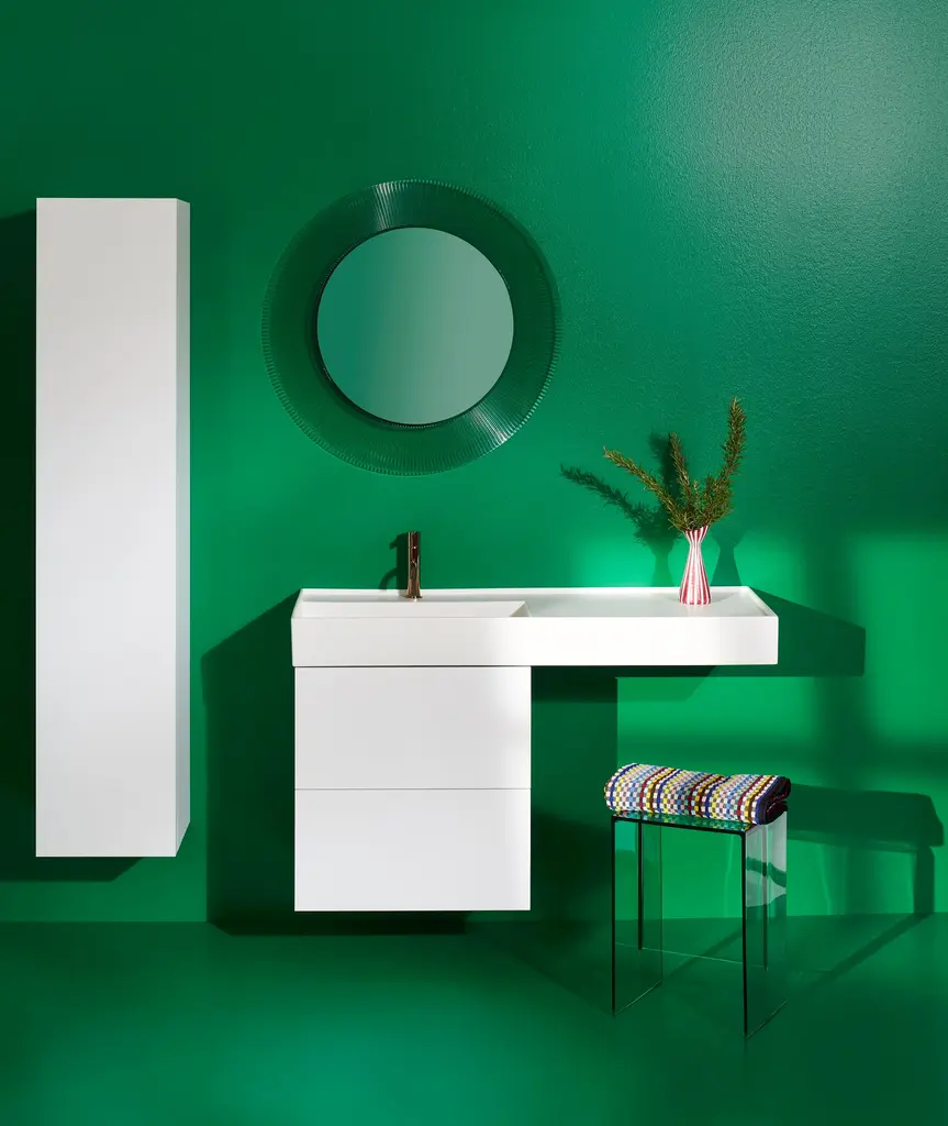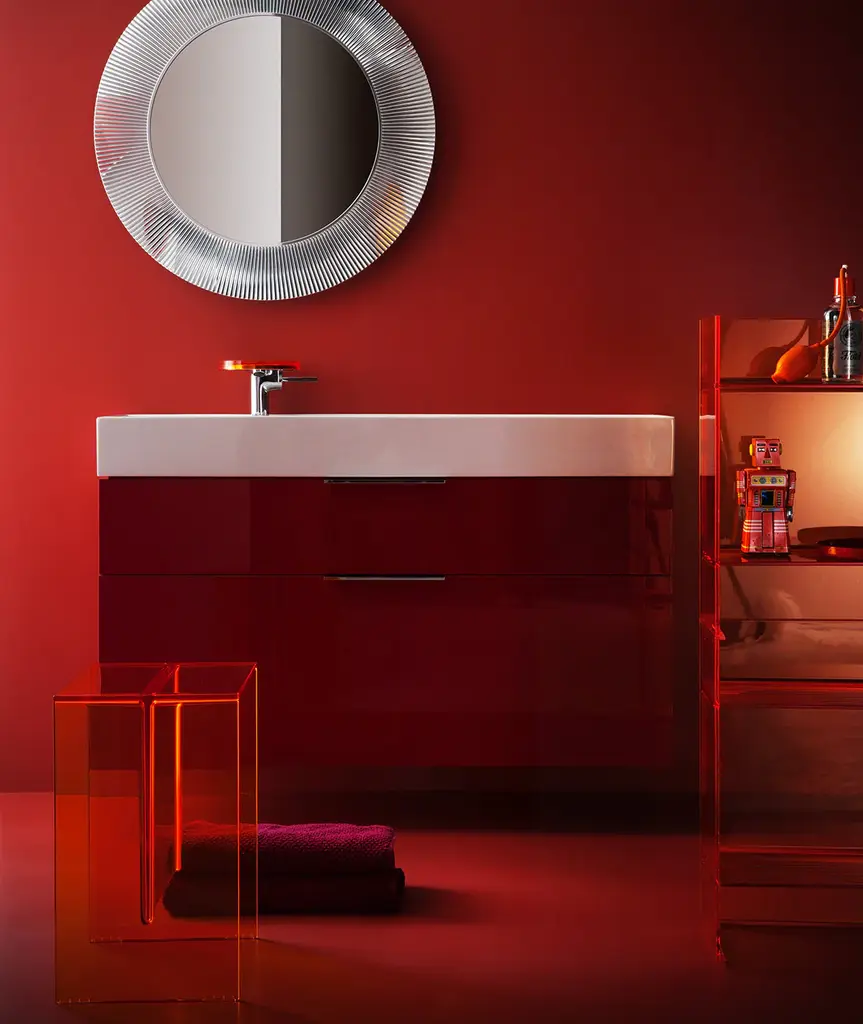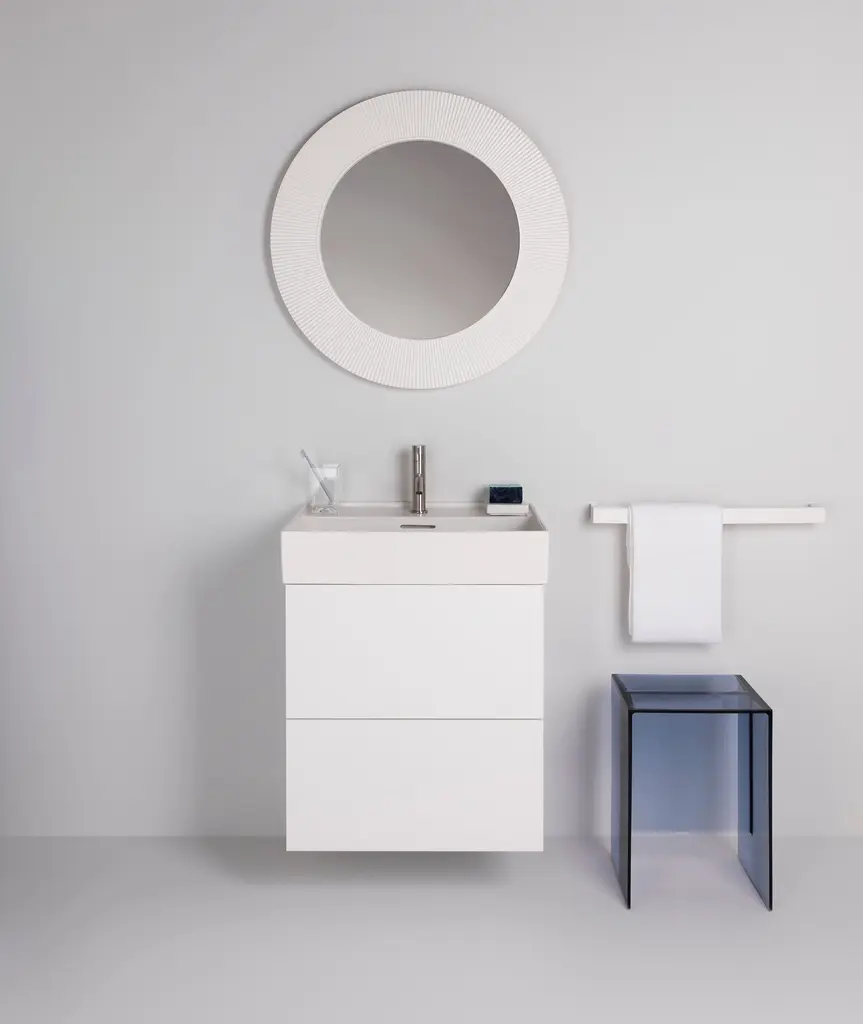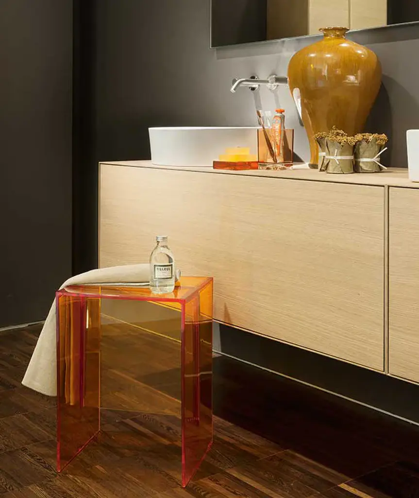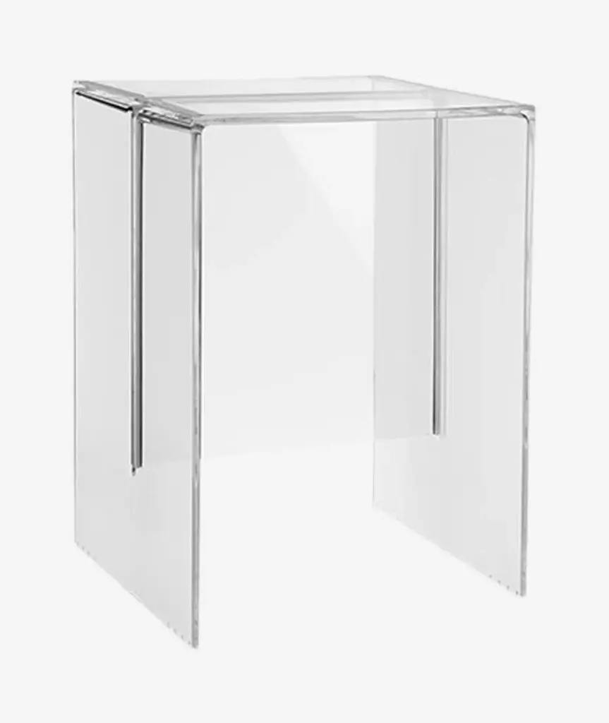 Monolithic stool/table with a thickness that emphasizes its geometric purity. A practical, functional and versatile accessory, for use anywhere in the home.