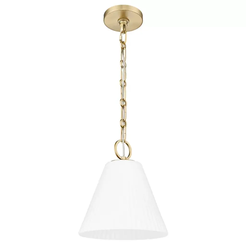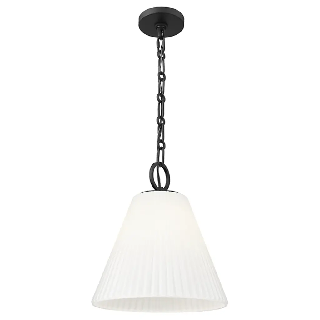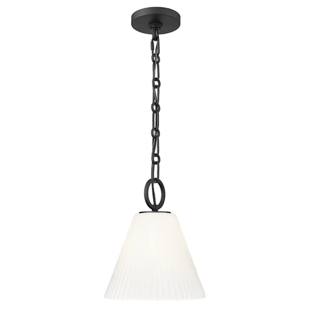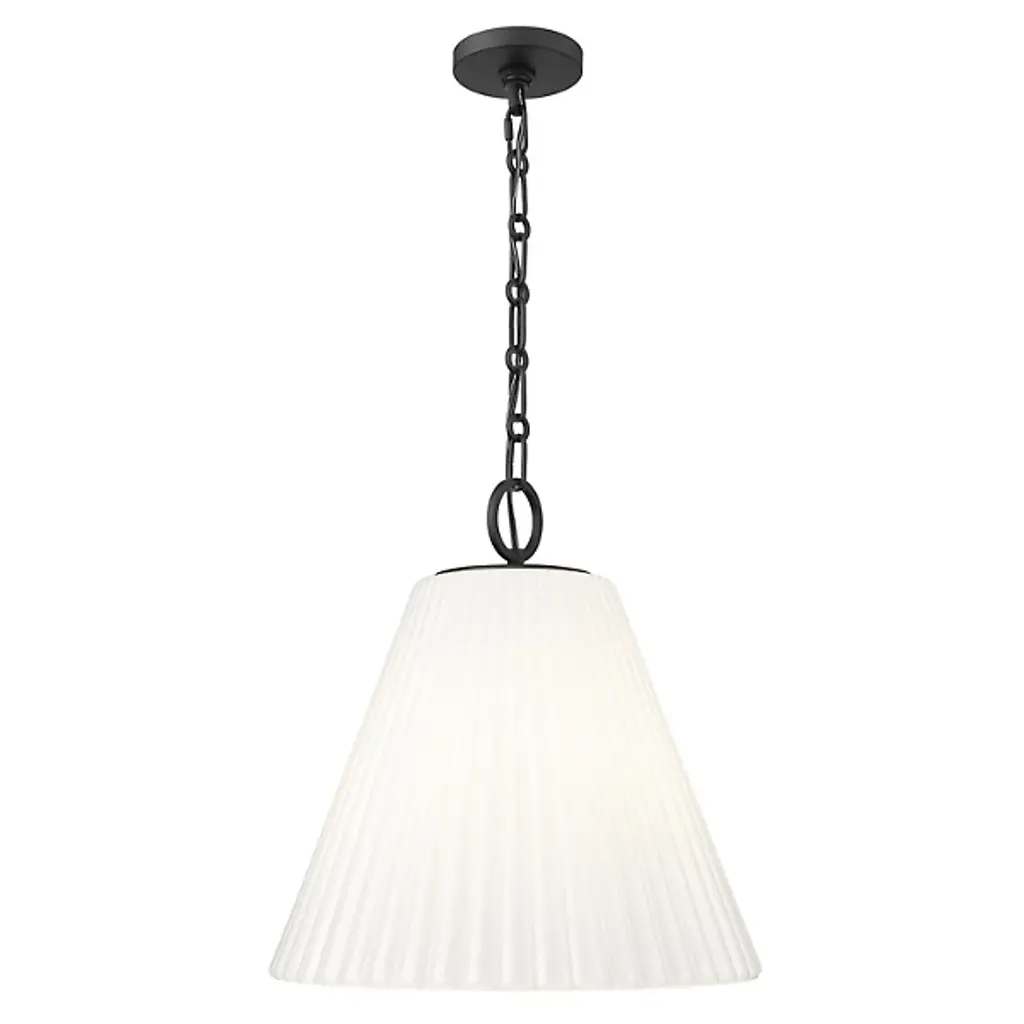 The Maxine Pendant by Alder & Ore (Z-lite) is a study in elegant simplicity, a single drop of illumination suspended in space. Its conical shade, delicately fluted like the petals of an inverted flower, diffuses light with a soft, ethereal glow. This versatile piece shines solo, creating an intimate spotlight over a side table or reading nook, or can be grouped in a rhythmic series to form a customized chandelier effect.