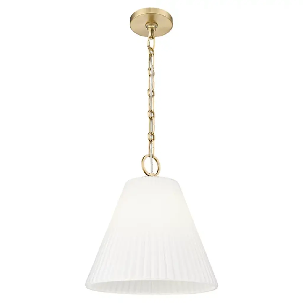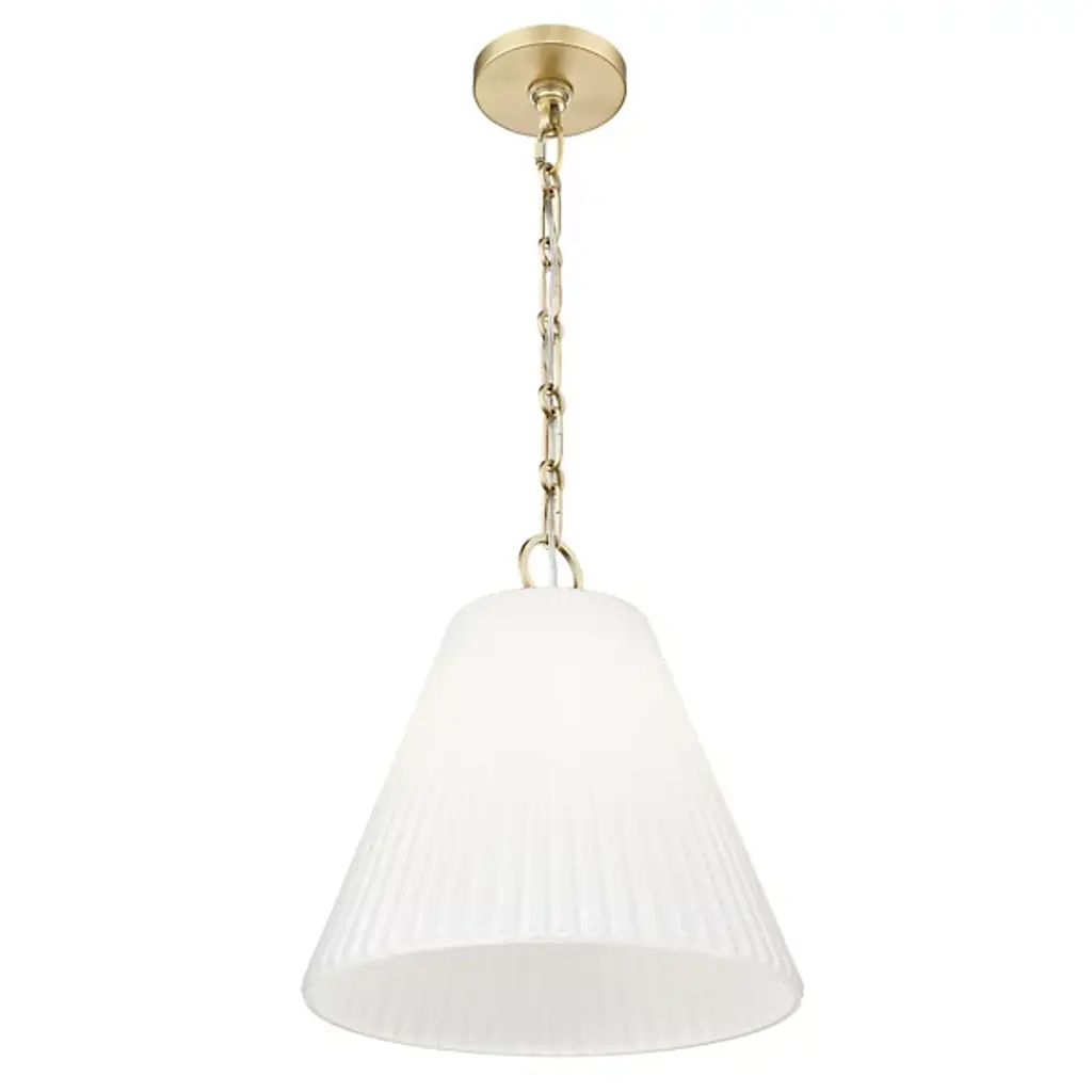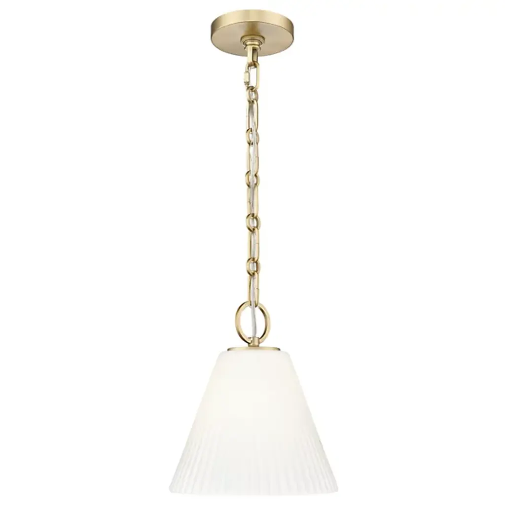 The Maxine Pendant by Alder & Ore (Z-lite) is a study in elegant simplicity, a single drop of illumination suspended in space. Its conical shade, delicately fluted like the petals of an inverted flower, diffuses light with a soft, ethereal glow. This versatile piece shines solo, creating an intimate spotlight over a side table or reading nook, or can be grouped in a rhythmic series to form a customized chandelier effect.