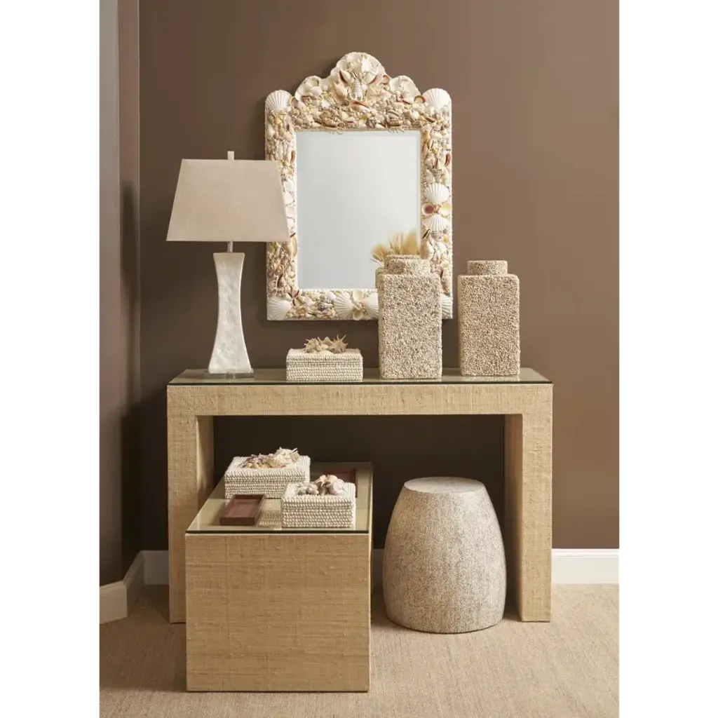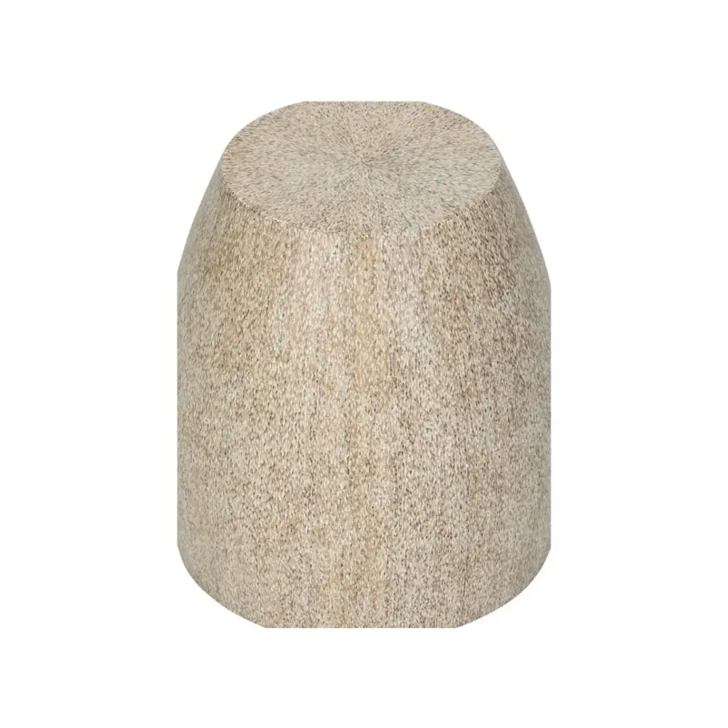 Constructed of natural turnsole twigs that are hand laminated over a wood-reinforced resin frame, this versatile piece can be used as a drum shaped stool or side table. Turnsole is a tropical wild grass that creates an interesting pattern and texture. The Maybelle Side Table is an organic pieces that brings the beauty of nature indoors.