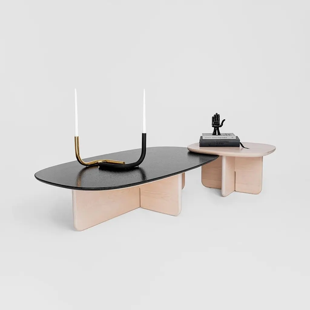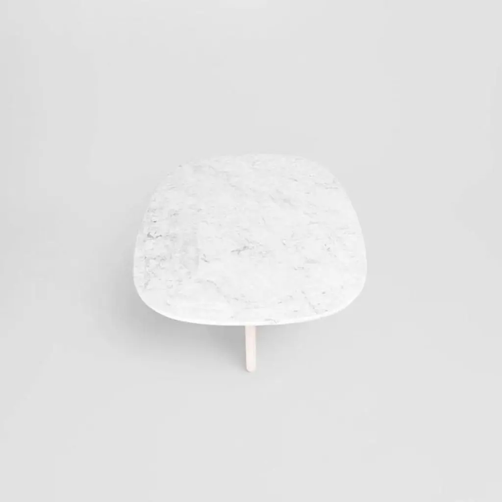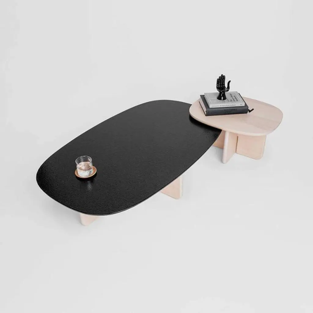 The megalithic Lítica and Mazo tables stand as silent witnesses to the passage of time, their forms sculpted with gestures that echo the origins of human creativity. Designed by Unicuo for the Masa collection, these pieces draw inspiration from ancestral choppers of the lithic period, evoking the raw, poetic essence of early human expression. Their presence—subtle yet monumental—infuses any space with a profound, timeless character.The Mazo table, paired with the Lítica side table, merges the visual lightness of solid beech wood with the natural elegance of leathered granite, creating a balance between refinement and primitive strength.
