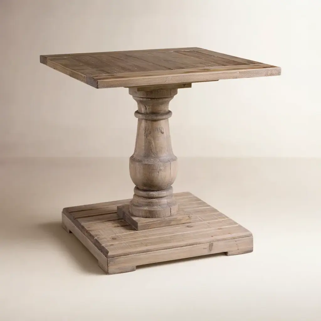 This end table pairs glam style with a rustic touch so it's just right for your living room or den. Made from solid fir wood, it features a square tabletop and base connected by a turned and molded pedestal column. Its natural brown and gray finish shows off a touch of distressing for an antiqued look that we love. This accent table looks just right next to your favorite living room armchair or even serves as a console table in the entryway. There's plenty of room on its 26'' wide surface for an accent lamp.
