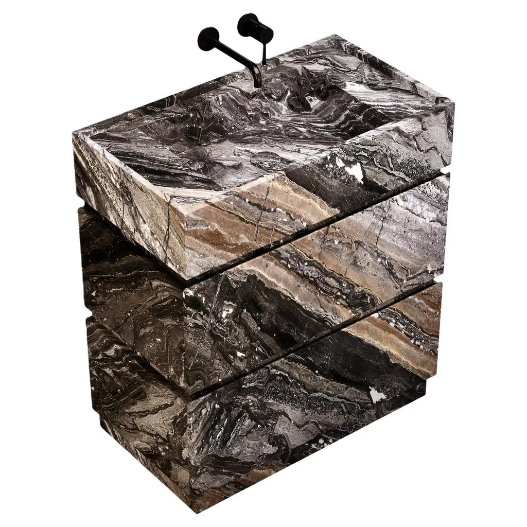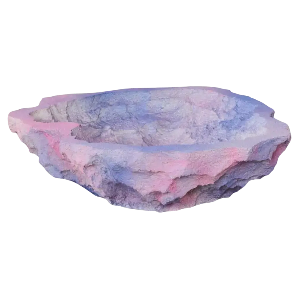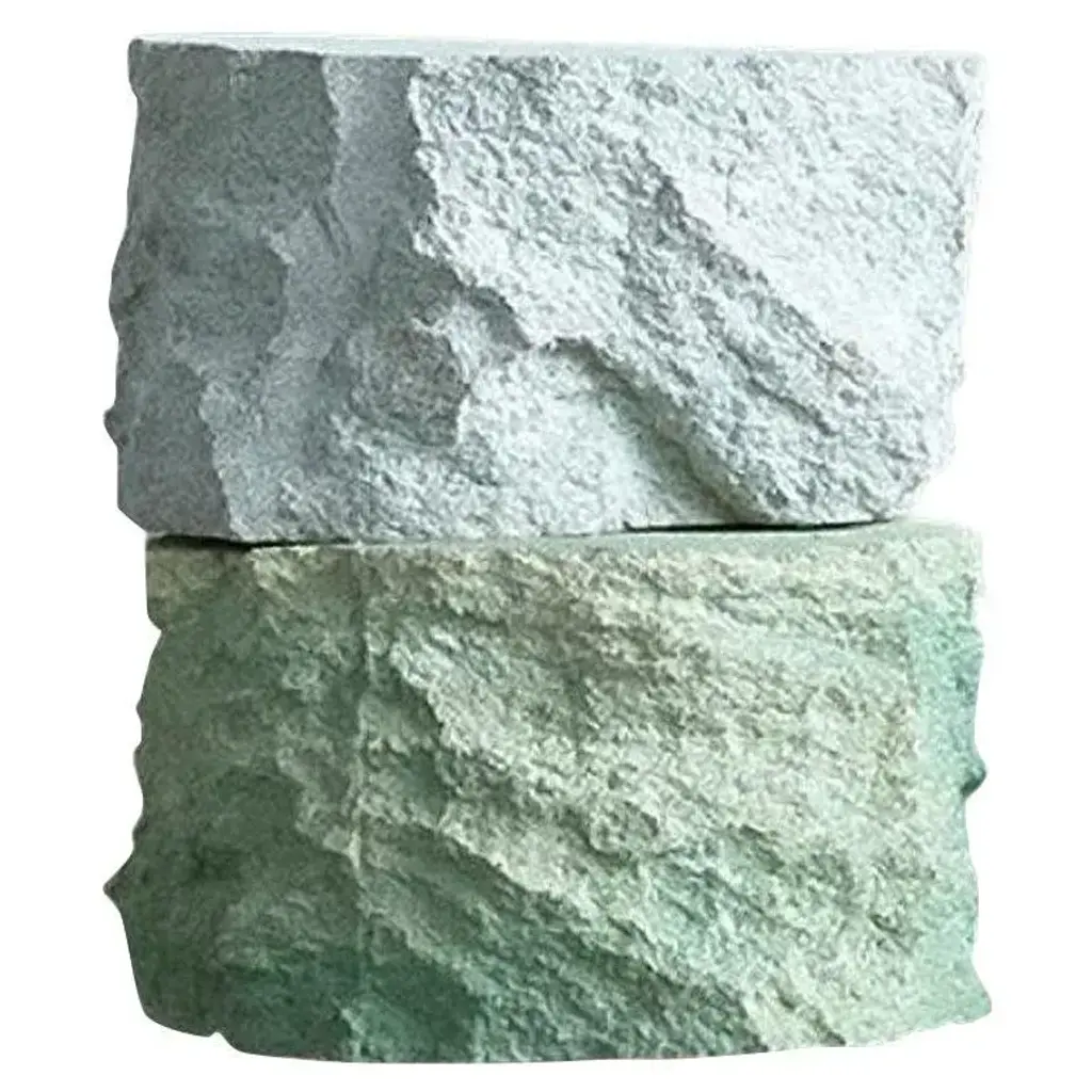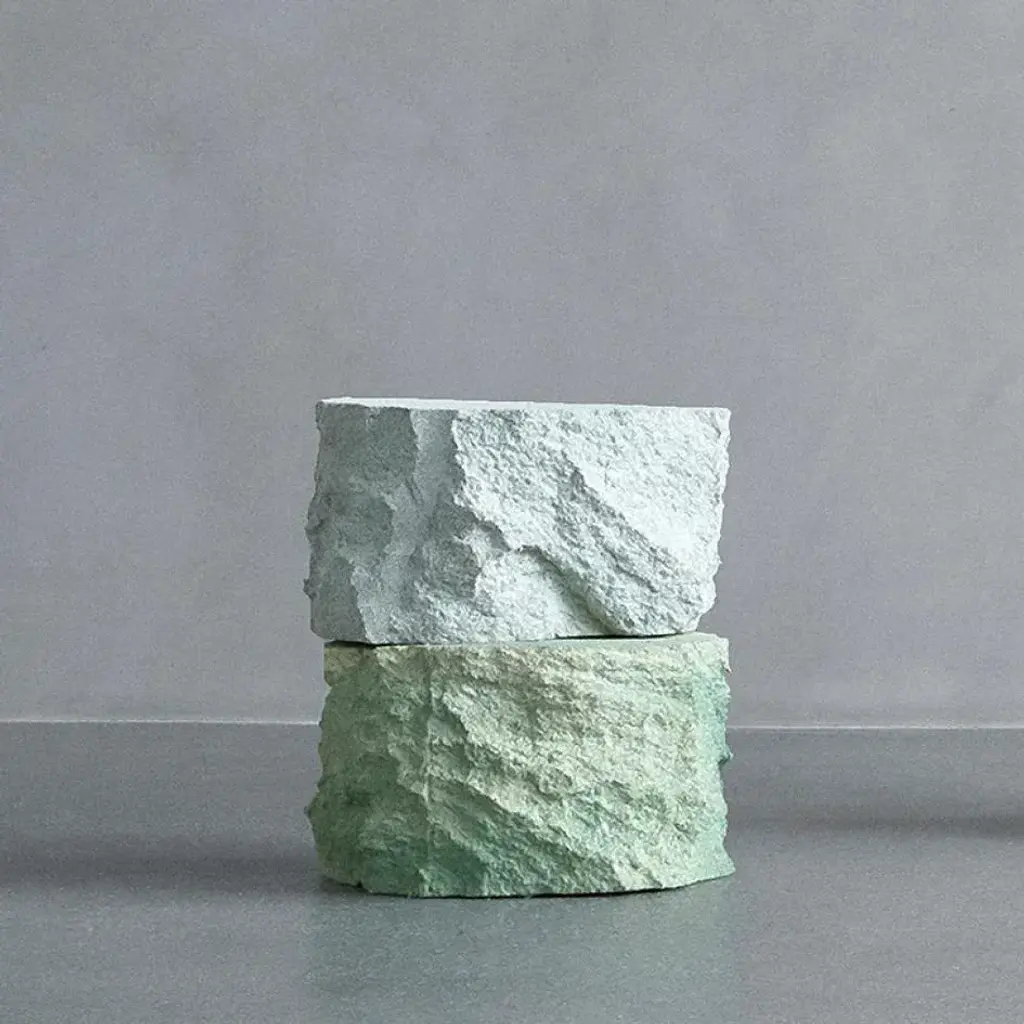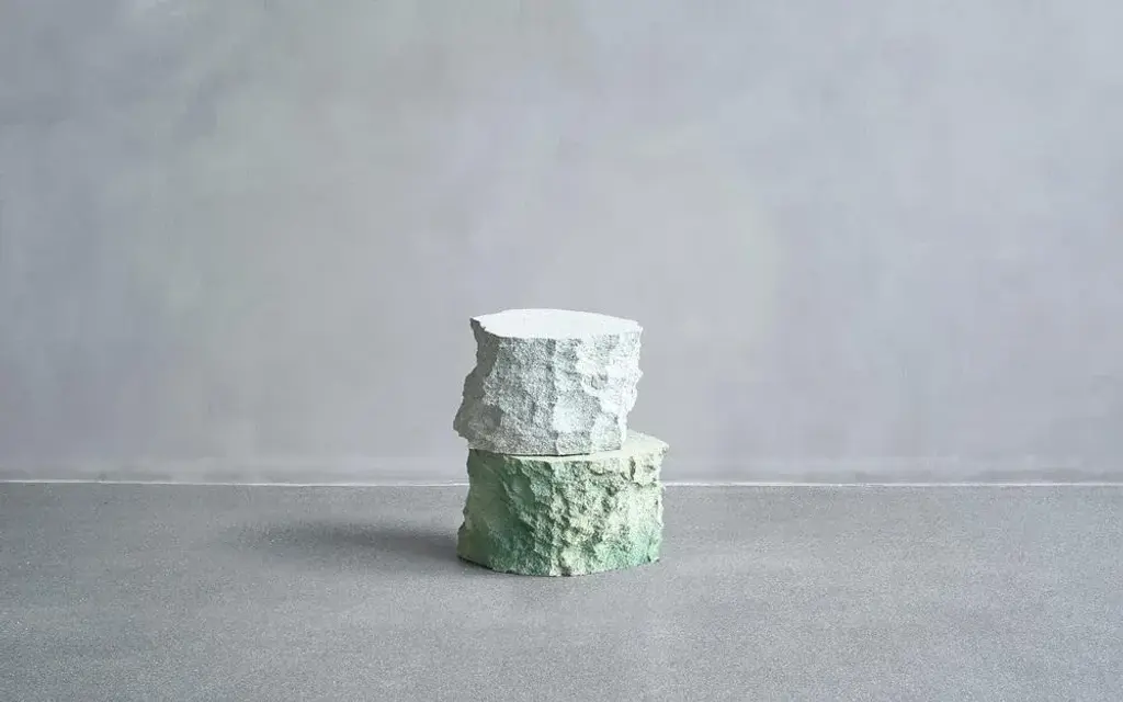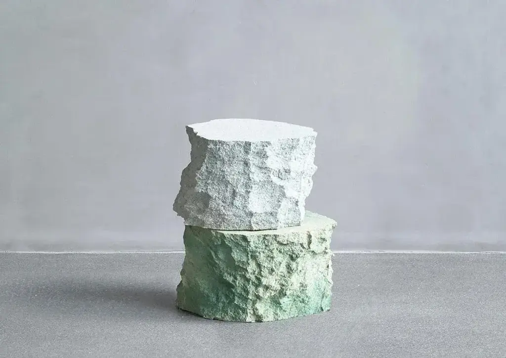 Side Table Meadow Blocks by Andredottir & Bobek Dimensions: D 25 x H 40 cm Materials: Reused Foam/mattress and Jesmontite Hardner in Color White ang Green Fade. Artificial Nature is a collaboration between the artist and design duo Josephine Andredottir and Emilie Bobek We have in this project imitated landscape with artificial materials. We create an artificial scene of nature because art and design often find common ground here. The natural colours of rock, stone and moss are what first comes to the eye when looking at the scene from far away, but when moving in between the shapes you slowly feel the transformation from natural to artificial within the objects. Sculptural function as well as physical function is not an aim in itself but is instead replaced with a diverse landscape where the object floats together as a whole. Here you are allowed to explore the materials and explore moss and stone in a new way. The many handcrafted shapes give a natural rough looking surface that allows the eyes to wander and find new places to investigate. Meadow Block side tables are all handcrafted in materials such as reused and recycled mattress hardnet up with jesmonite. Not only is the main product mattress turned into nature, but the works also contributes to recycling and focuses on creating less waste. Our work aims to encourage art and design as symbiotic disciplines, giving us as performers free rein to go beyond our professional background and develop a new and experimental art and design language together. We are curious about the borderland between art and design and are focused on the definition and use of the objects we surround ourselves with daily. Our artworks focus on material study, design language, object, and function. We believe that our work can contribute to society and raise social awareness of material research in design, art, and architecture. We believe that our work can contribute to engaging artworks that create less waste and focus on high quality and sustainability in objects. We believe that our works can push ourselves and others to question the definition of objects by using modern material research in hand-built shapes and structures. We see ourselves as an art and design generation of material researchers. Our works aim to explore how objects and materials are used today in products and how we can cross the borders and use materials to their full potential.