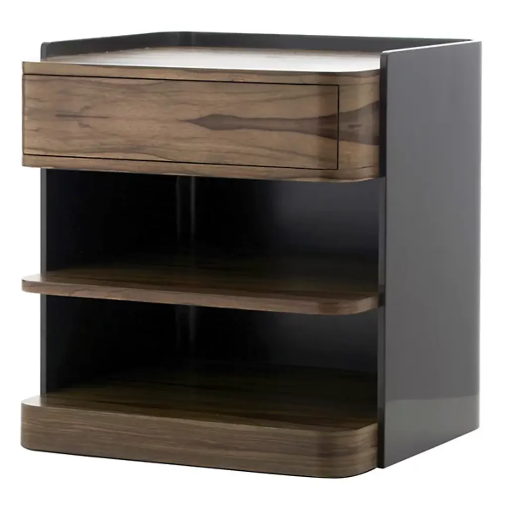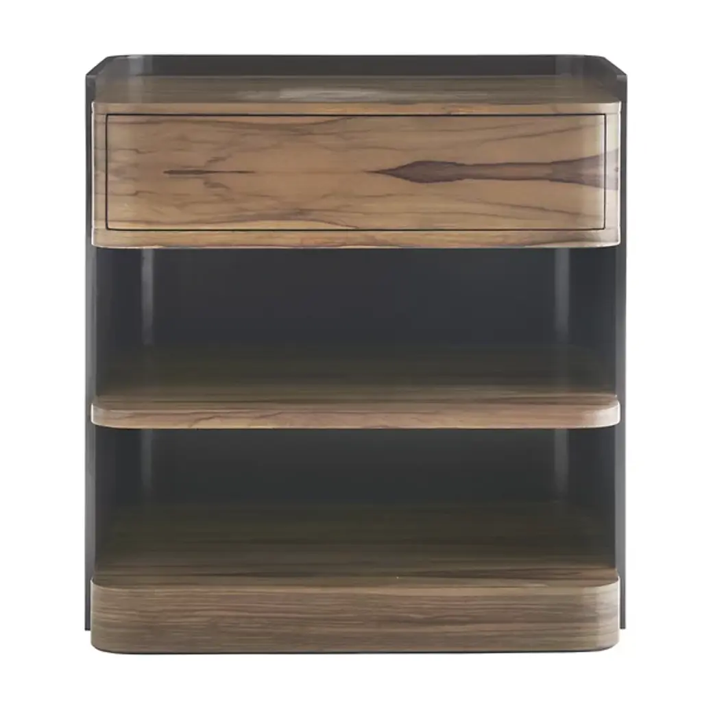 Bring a rustic modern style and thoughtful storage to your home with the Medici Side Table by Arteriors. This table is composed of a fine Ofram veneer. Medici is defined by its box-like framework, which boasts an open front side. Your table is lined with a top drawer that keeps your possessions discreetly concealed. Stay organized with the shelves below the drawer, and keep your favorite sculptures on display.