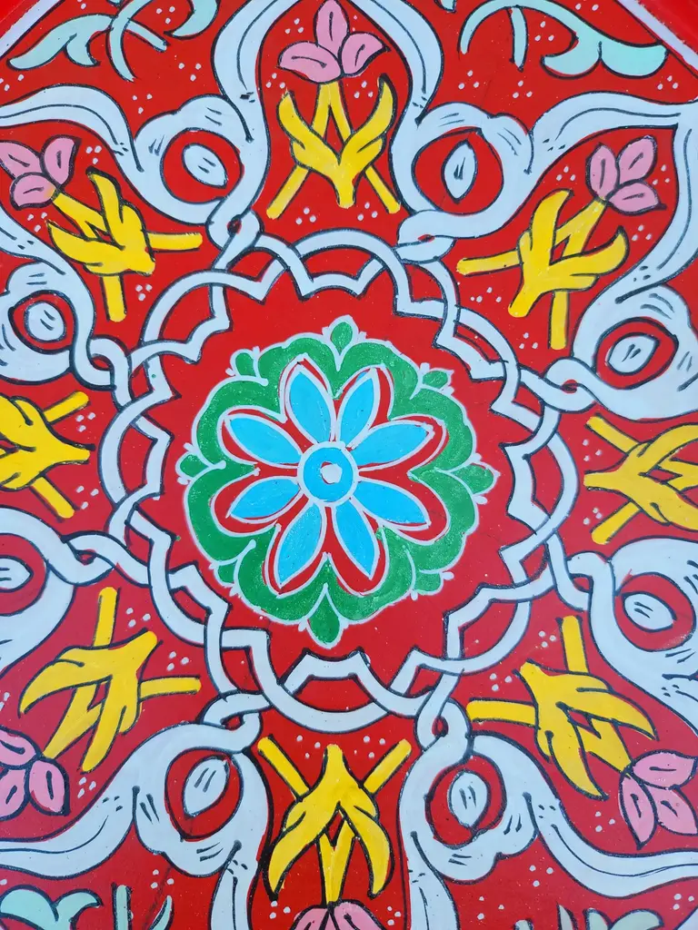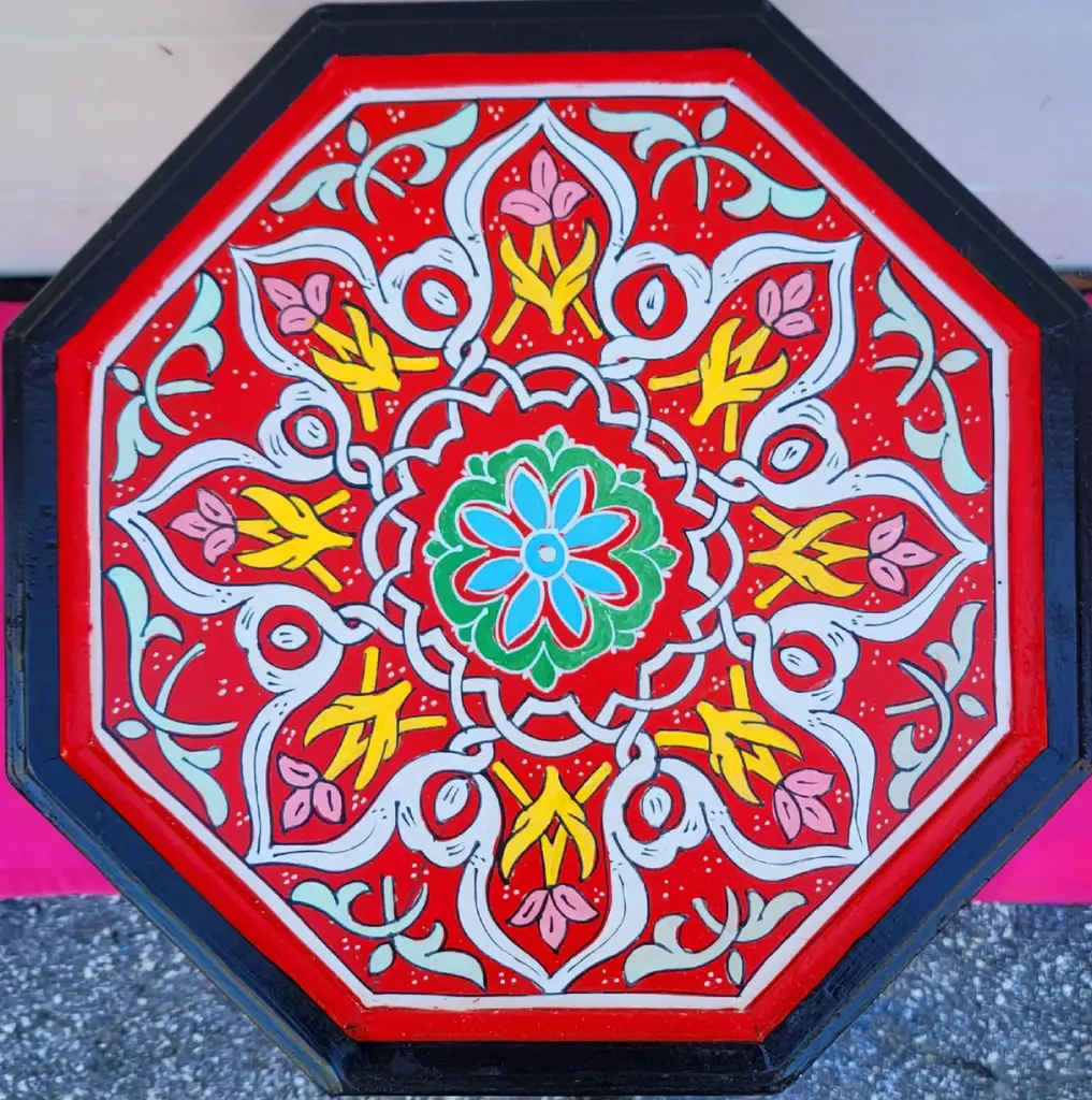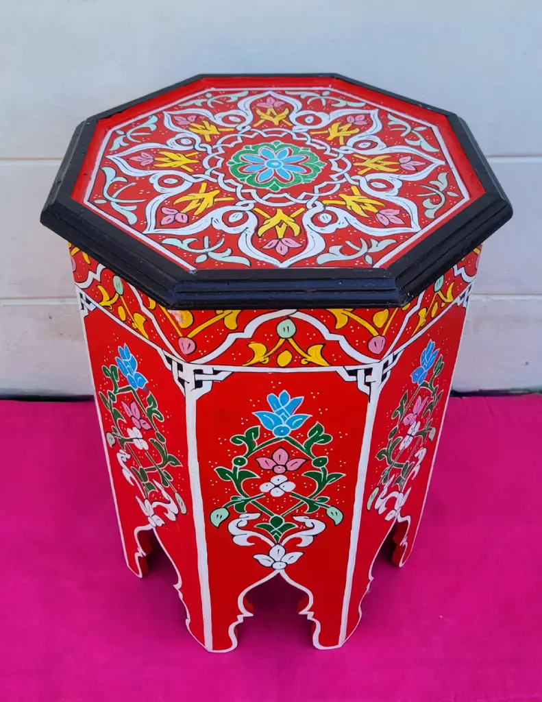 Mediterranean Hand Painted Octagonal Wooden Side Table / Red Zouak