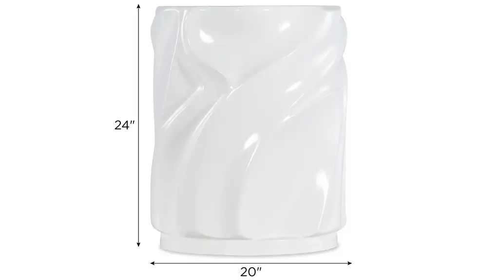 Melange Alabaster End Table features a carved twist design and plinth base with a creamy white finish. Sleek and modern yet feminine and shapely.