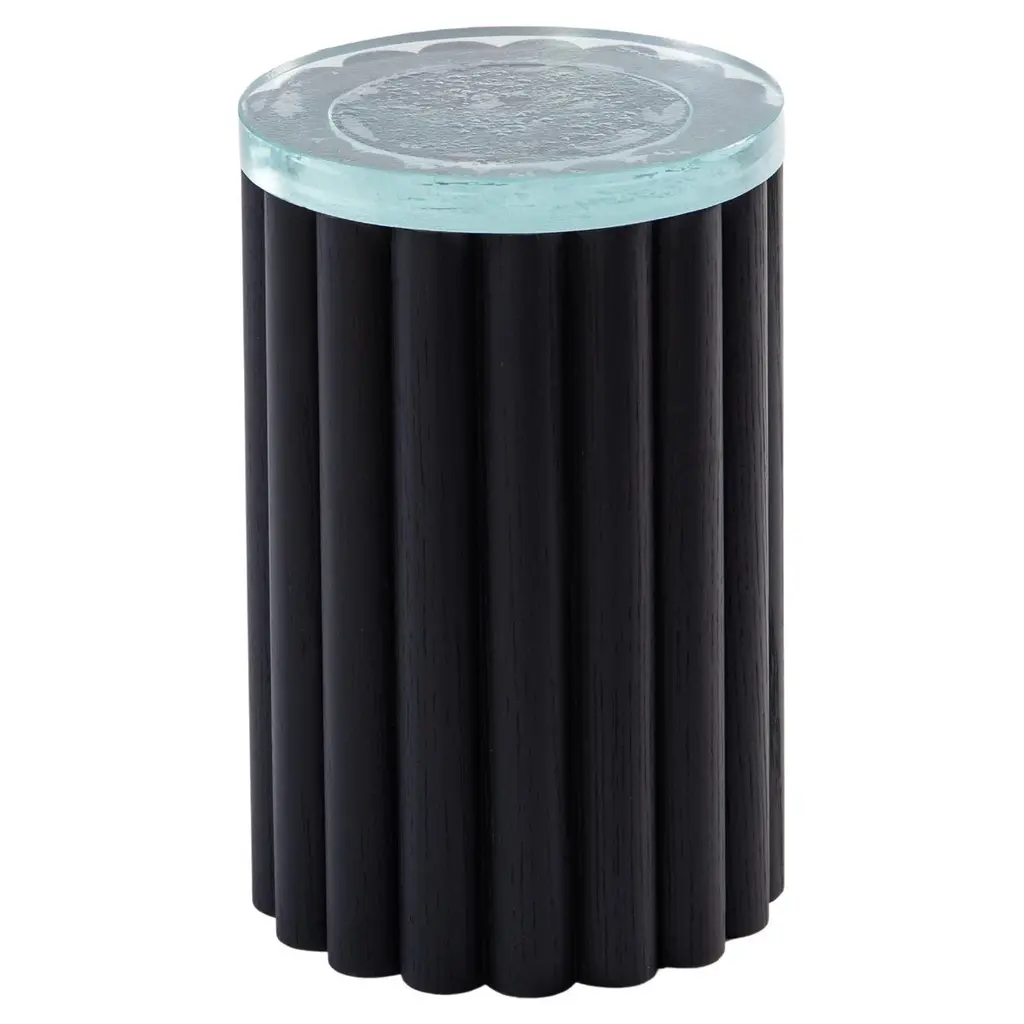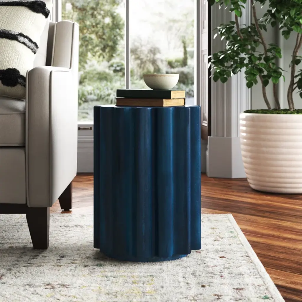 This end table is a sculpted wonder, bringing a trendy twist to any space. Crafted entirely from concrete, it boasts a round tabletop and a cylindrical base with rounded ridges. The rubbed design on the shade adds a touch of rustic charm. Perfect for indoor or outdoor use, this table is as versatile as it is stylish. Use it to hold your favorite books, drinks, or decor pieces. The round shape makes it an ideal centerpiece for any seating arrangement. Plus, its weight capacity of 220 lbs. means it can handle all your essentials with ease.