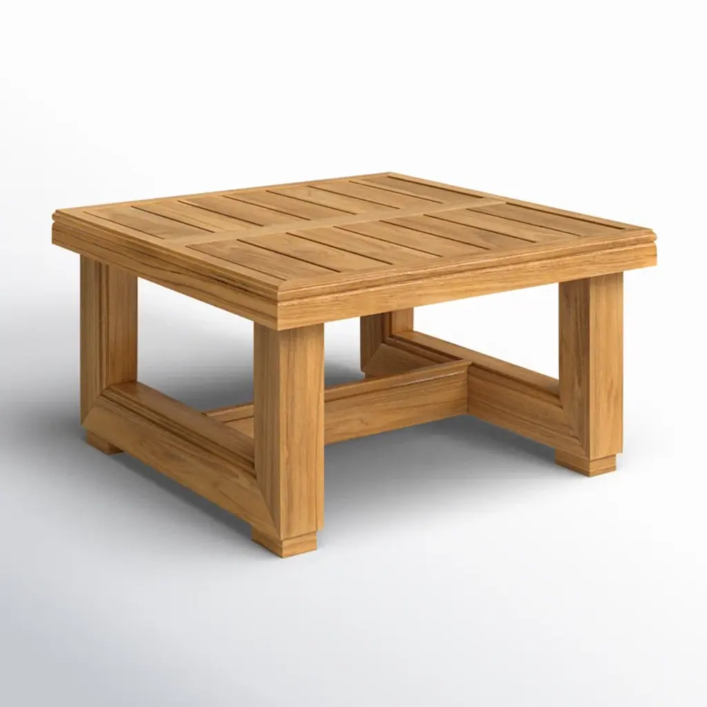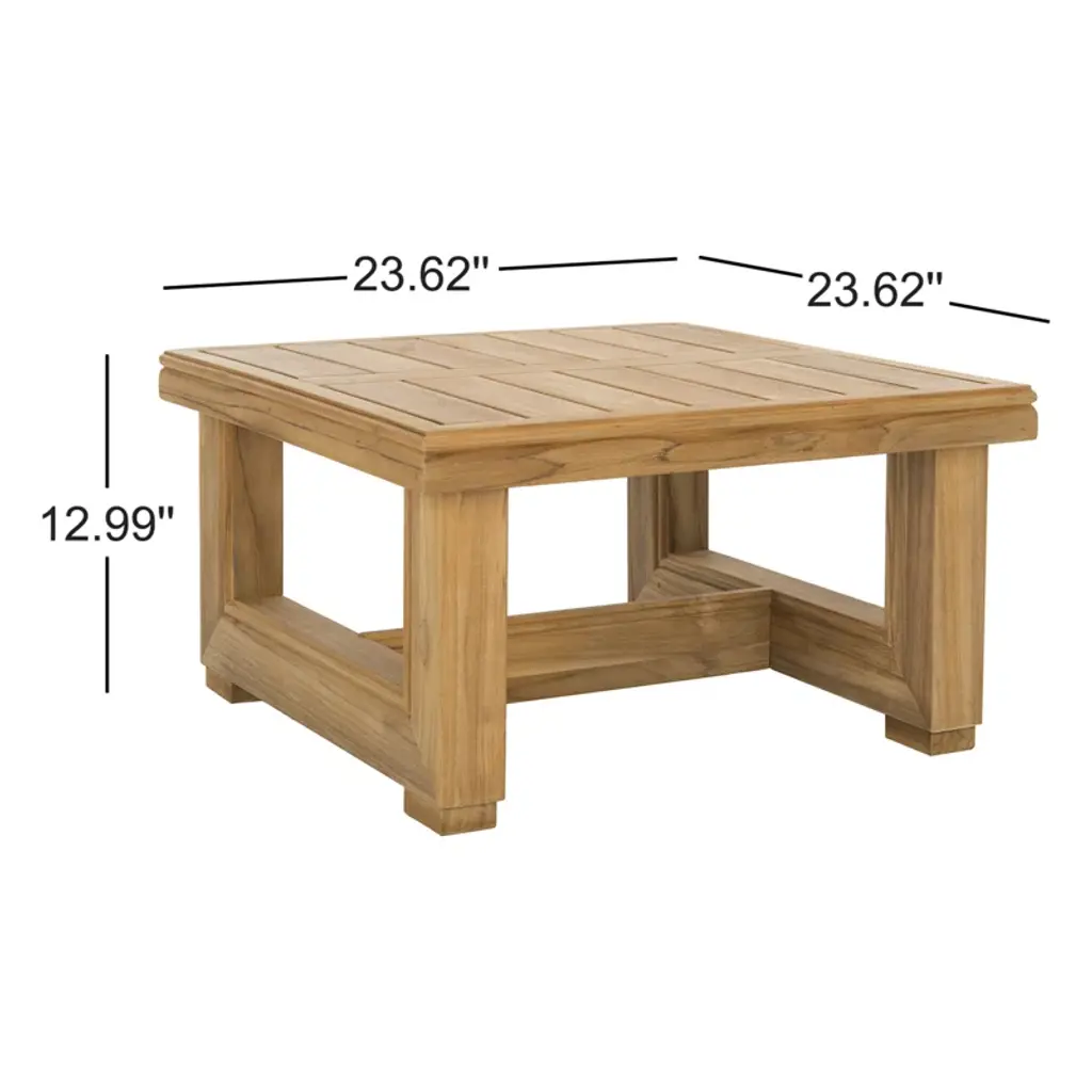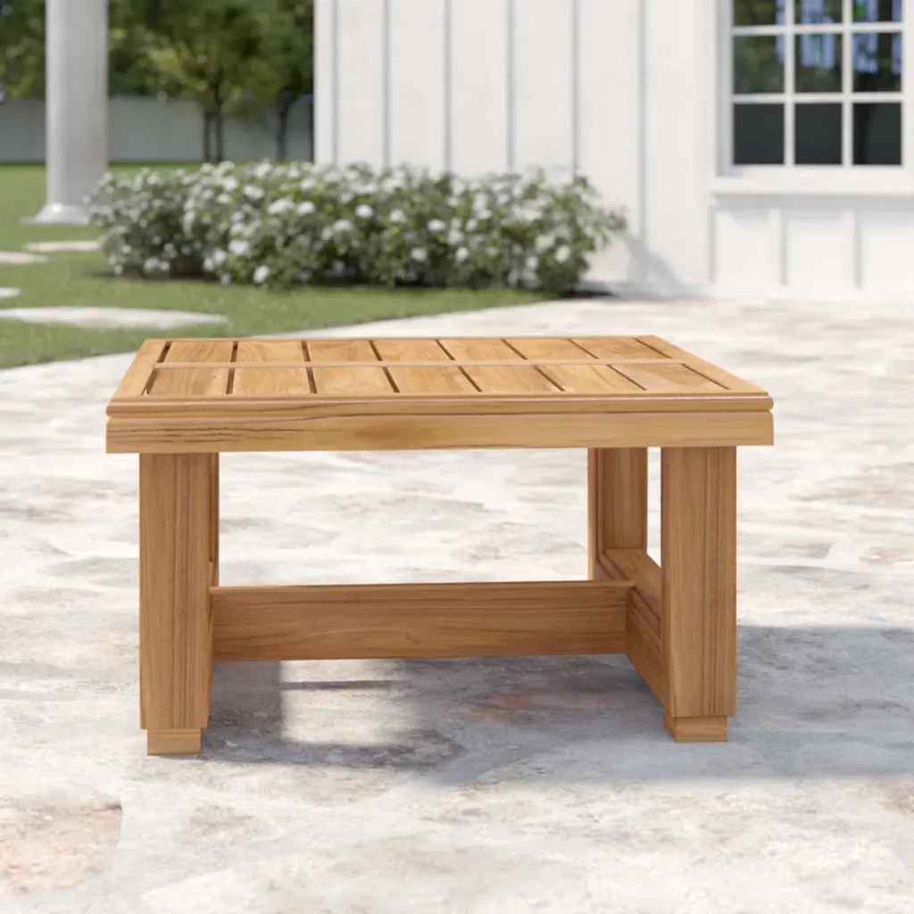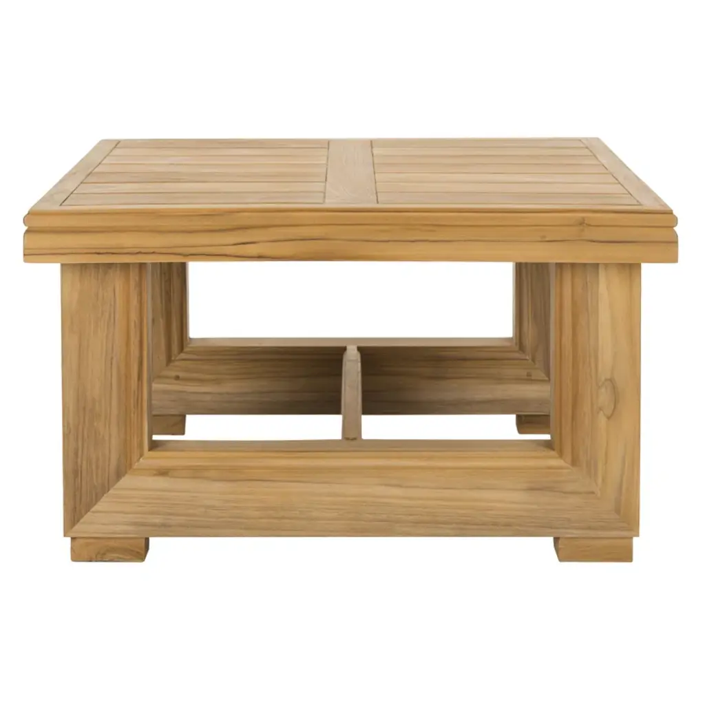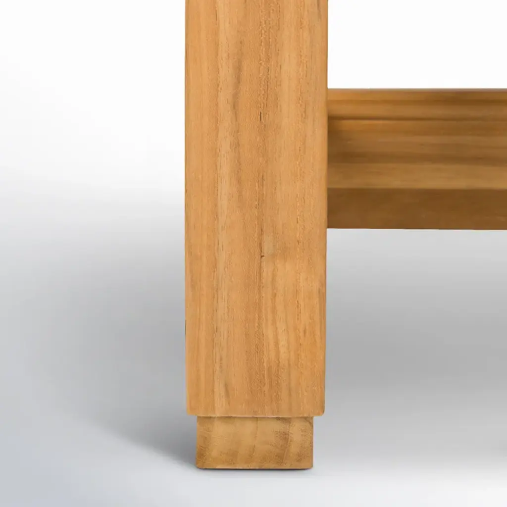 A handy accent, ready to refresh your patio or deck. This outdoor side table is bold and clean-lined. It's crafted from kiln-dried solid teakwood with a natural finish that's resistant to UV rays, water, rust, and weather. We especially love the variations in the wood grain along with the side cutouts for a more open look. The square table top has a slatted surface, so water doesn't pool. And there's plenty of room for a bowl of snacks and a couple of books.