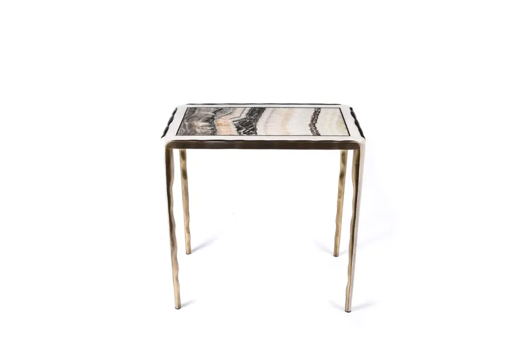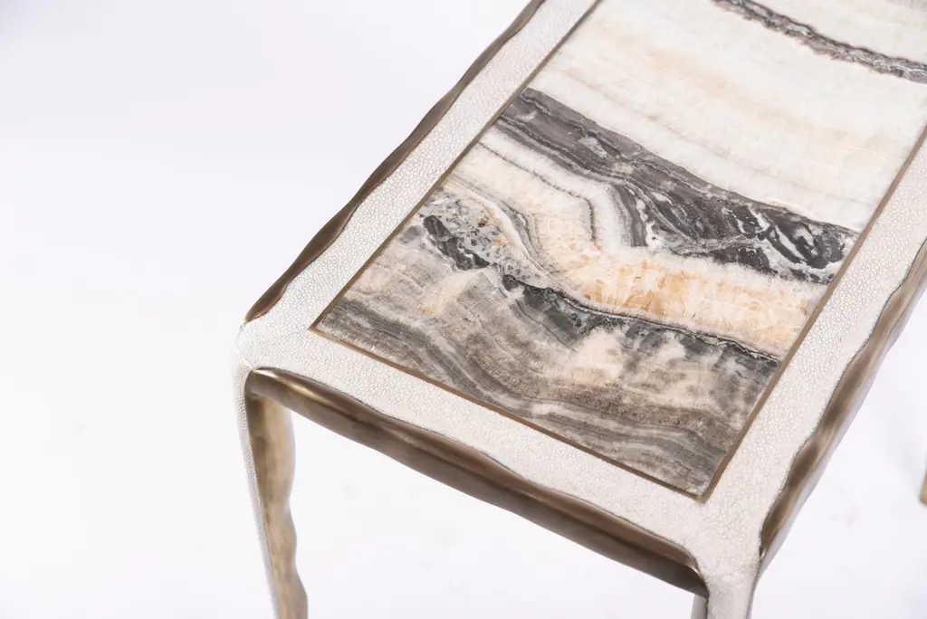 Melting Nesting Side Table Set Of 3 In Shagreen, Onyx And Brass By R&y Augousti