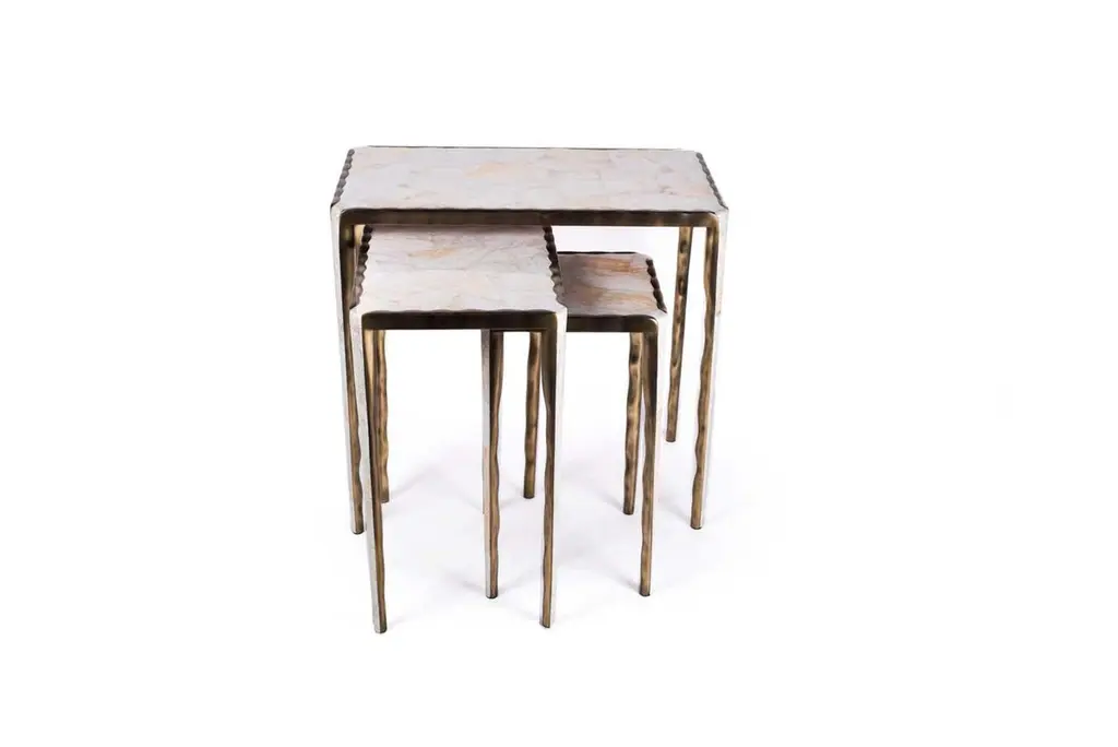 Melting Nesting Side Table Set Of 3 In Shagreen, Shell And Brass By R&y Augousti