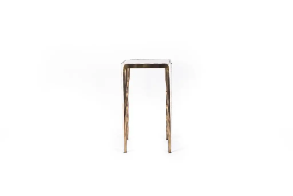 The Paris based label has distinguished themselves since their launch, with their iconic use of shagreen mixed with brass and other exotic materials. All furniture is handcrafted by skilled artisans, ultimately making each piece unique, designed in Paris and produced in the Philippines.The Melting Nesting Side Table in Small is part of a series of nesting side tables (sold separately) . One can purchase the tables on their own or buy them as a set to create elegant & geometric shapes. This piece is inlaid in mother of pearl and the top is framed with an irregular surface bronze-patina brass that continues onto the legs, which creates the "melting" effect against the shell inlay. This piece comes in 3 sizes total (L, M & S), image at end of slide. The mother of pearl is hand selected by artisans before being inlaid, creating a one of a kind piece every time. This piece can also be ordered in other finishes, image at end of slide. The dimensions of this piece are 28 x 28 x 50 cm / 11.02 x 11.02 x 19.6"All R&Y Augousti pieces are handmade by artisans, ultimately making each piece unique. Custom color/sizing available on request. Wipe clean with soft dry cloth.Acclaimed design duo Ria & Yiouri Augousti have established themselves since the 1990s as pioneers of modern-vintage style through their luxurious Art Deco inspired collections.The Paris based label has distinguished themselves since their launch, with their iconic use of shagreen mixed with brass and other exotic materials. All furniture is handcrafted by skilled artisans, ultimately making each piece unique. All shagreen-covered items should be kept out of direct sunlight, color variants may occur on the stingray and other exotic finishes, but this showcases the Parisian label's commitment to creating authentic luxurious products using natural components.