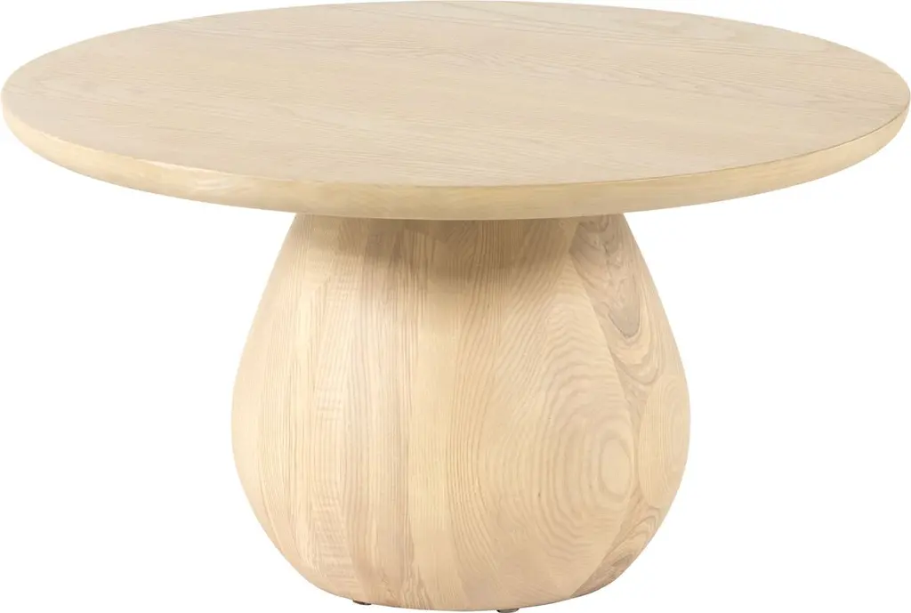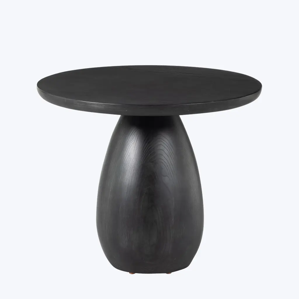 Blending volume and soft curves, the Merla Wood End Table makes a shapely statement. This stunning accent features an eye-catching solid ash base and a rounded tabletop. Choose from Light Natural Ash Veneer/ Short and Black Wash Ash Veneer / Tall. An elegant addition to contemporary interiors.