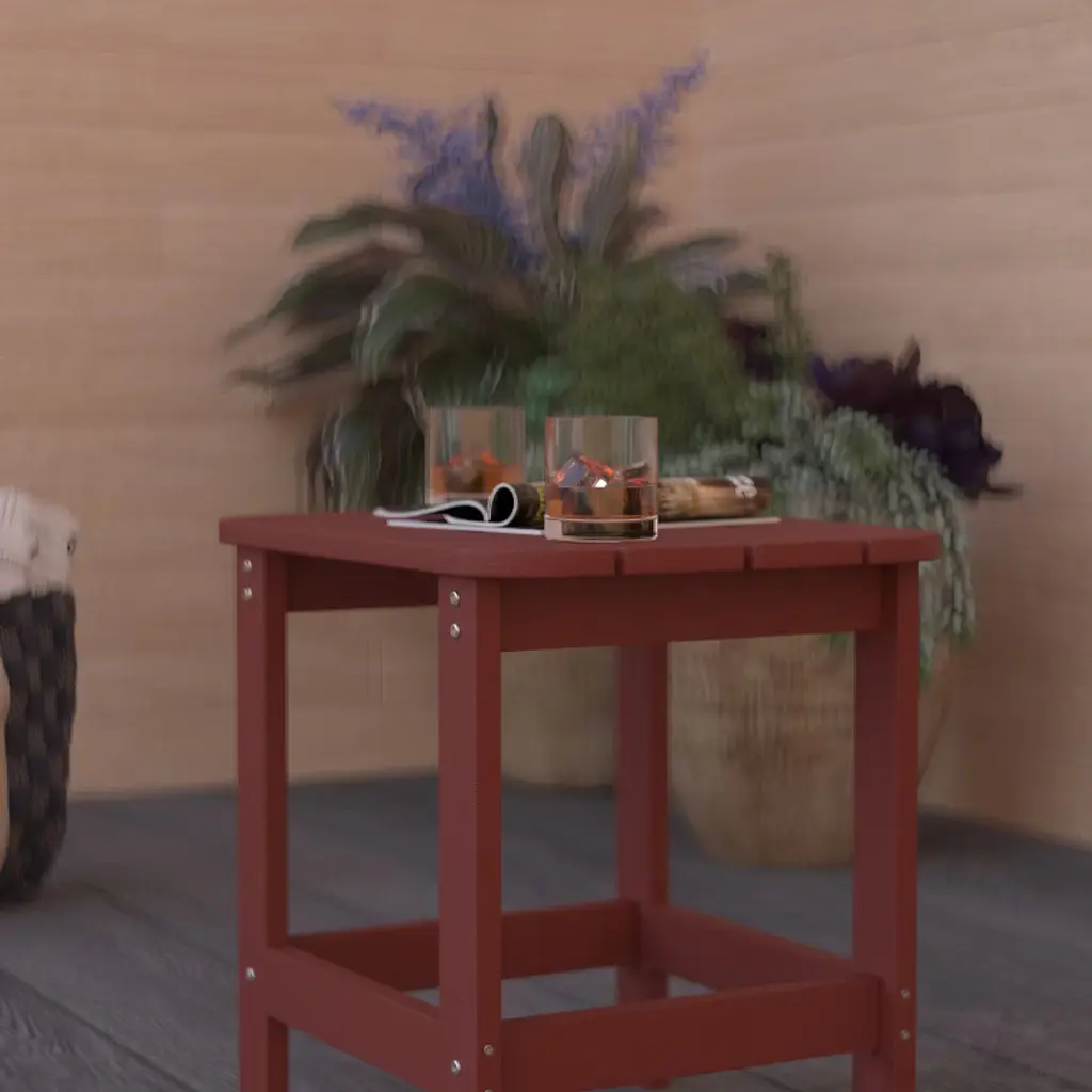 Merrick Lane Poly Resin Indoor/outdoor All-weather Adirondack Side Table In Red