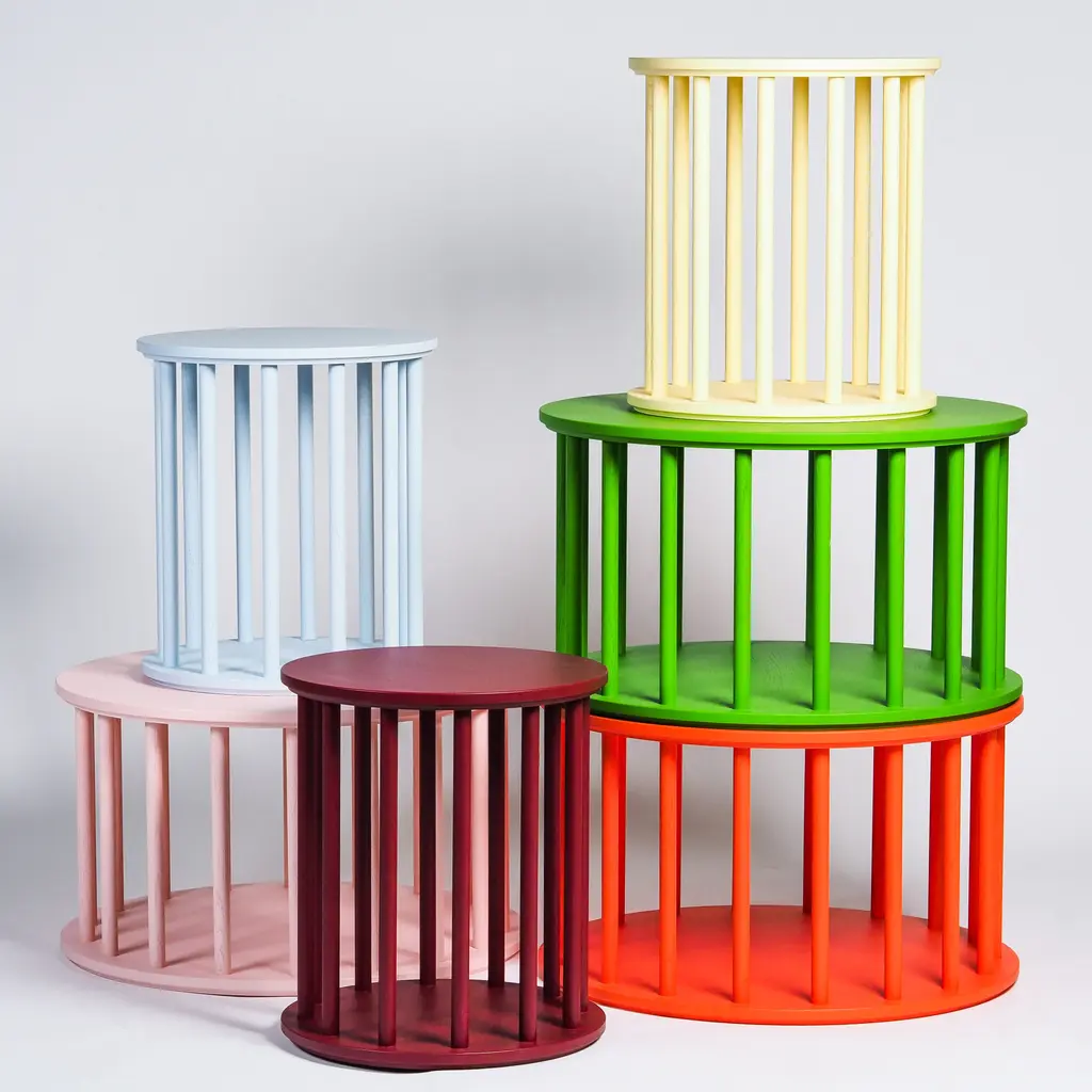 ”Merry-go-round” is a fun yet versatile wooden household object, functioning as a side table or a stool. This compact companion is packed with character, perfect match for the contemporary home.