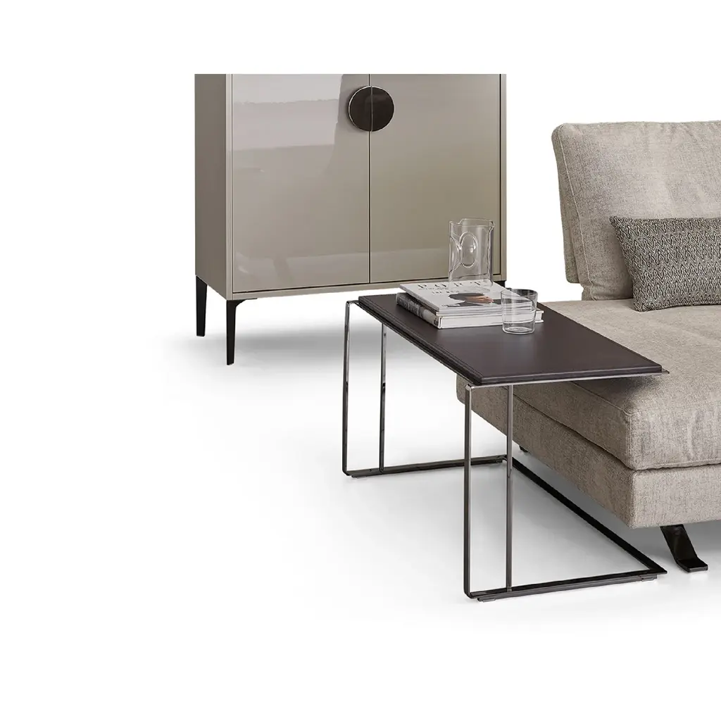 Introducing the Dema Deck Metal Framed Side Table, a luxurious addition to your living space. Choose from chrome-plated, black nickel-plated, or satin-finish stainless steel frame options, paired with a top of multi-ply zebrawood, glossy lacquer, or leather in various colors. Elevate your decor with this elegant and versatile piece.