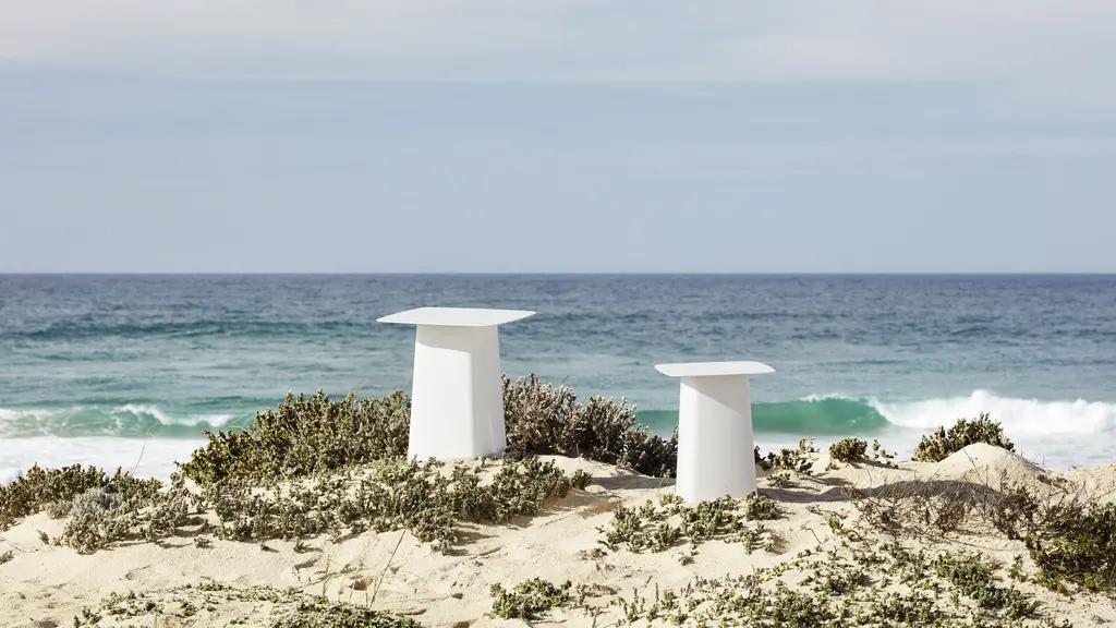 The outdoor versions of the Metal Side Tables, designed by Ronan and Erwan Bouroullec, have a matt powder-coated finish and are available in a separate range of colours from the highly-polished indoor versions. The combination of thin table tops and plinth-like bases generates an appealing contrast.