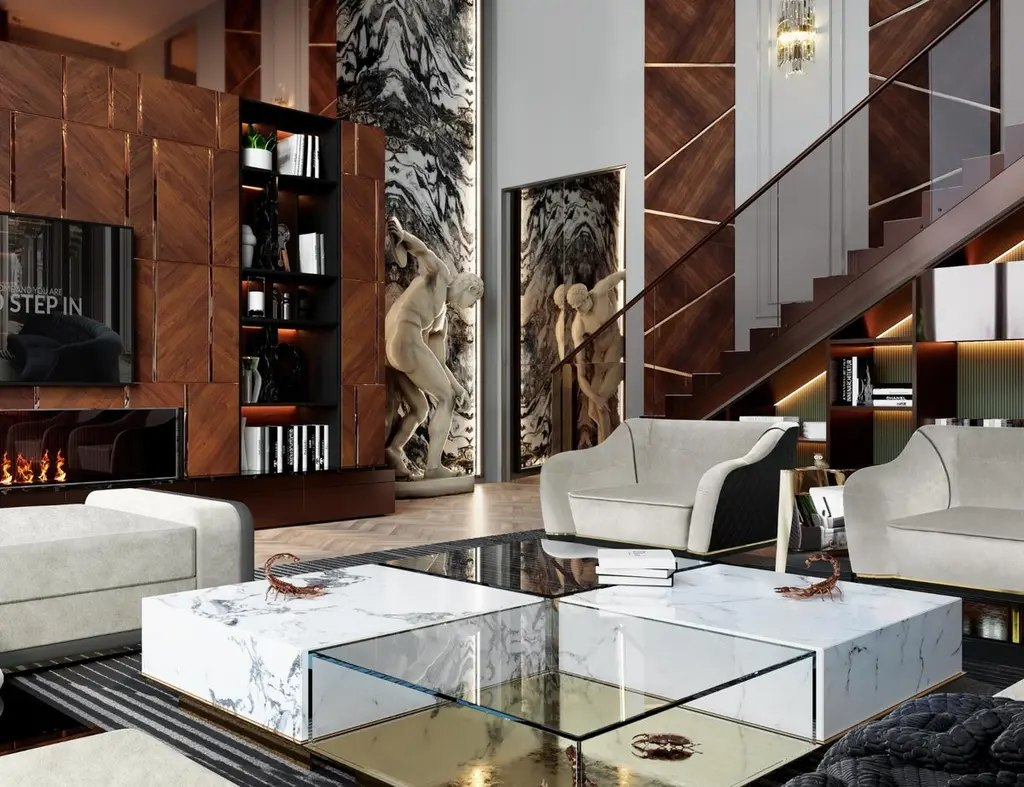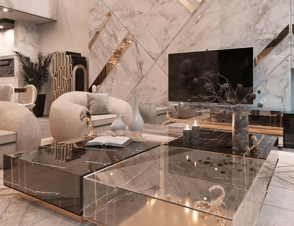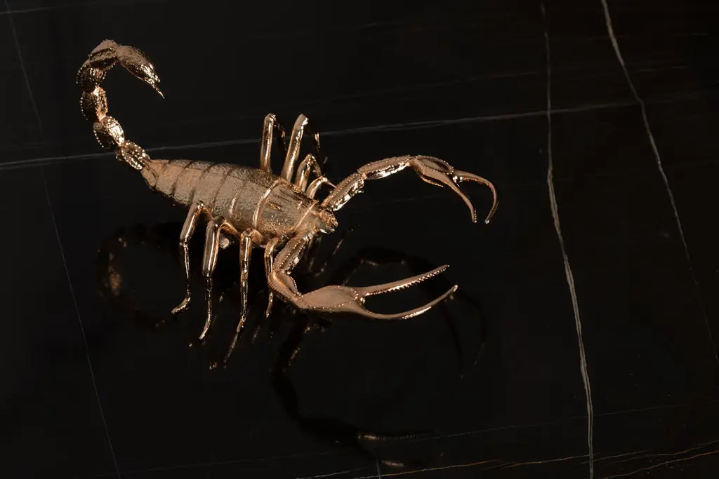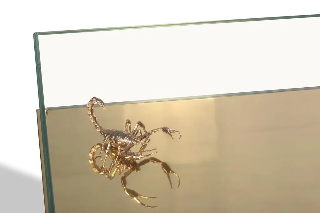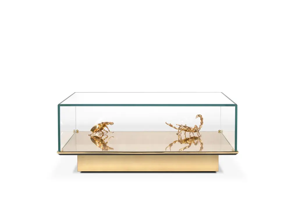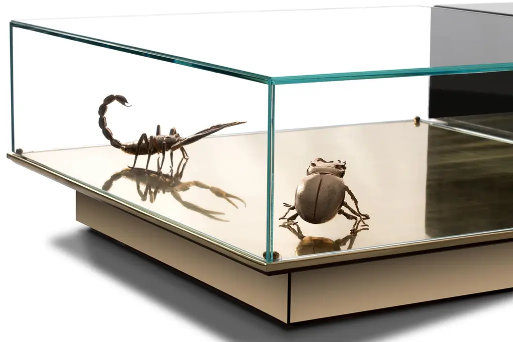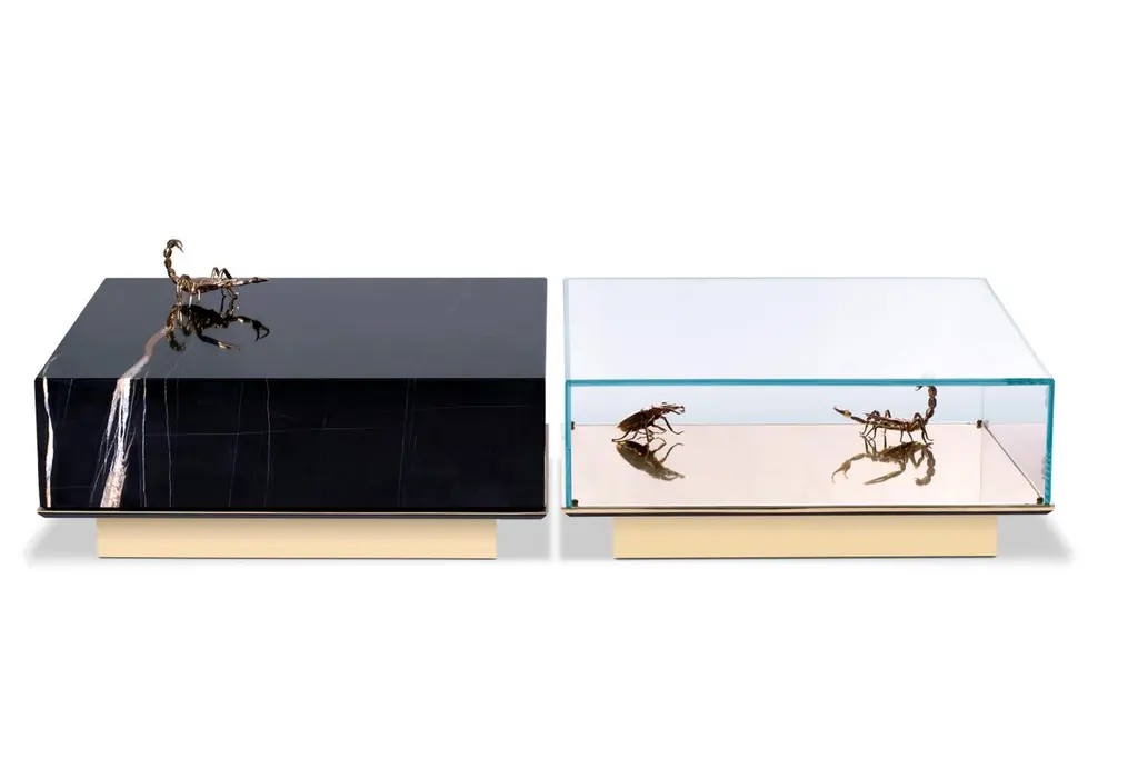 The enormous success of the Metamorphosis Series gave birth yet to another unique creation – Metamorphosis Center Table. Similar to the dramatic transformation and the sudden change in the animal's body structure, Metamorphosis Coffee Table experiences new unexpected design techniques, noble finishes through a meticulous artistic process. The coffee table is composed of two fragments, finished in mirror and noble marble and beautified by the presence of golden creatures that are prepared for their ultimate metamorphosis.