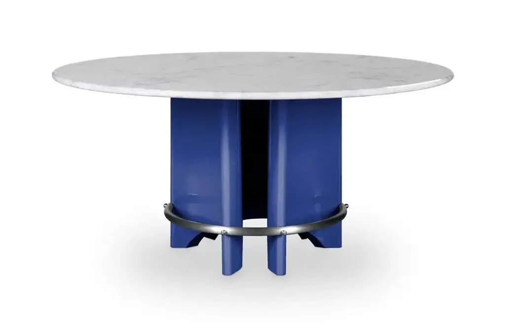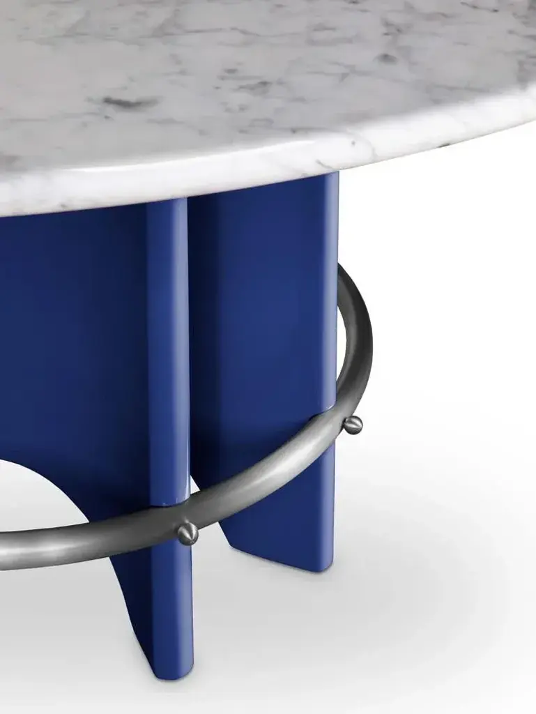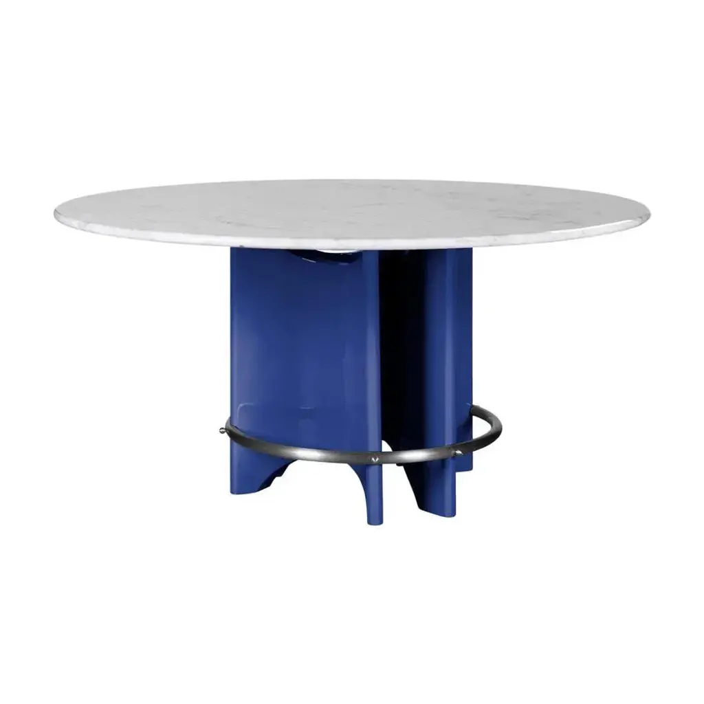 Meyer table by royal stranger dimensions: d 160 x w 160 x h 75 cm. Materials: carrara marble with polished finish, lacquered with glossy finish base, stainless steel ring. Available in: table top: carrara marble, nero marquina, estremoz, rose estremoz, guatemala green and emperador with polished or honed finish. Base: in walnut or sottsass wood veneers, in red, orange or grey colors, or lacquered in all ncs/ral colors, or in gold, copper and silver leaf, with glossy or matte finish. Ring: available in brass, stainless steel and copper with polished or brushed finish, or lacquered in all ncs/ral colors with matte or glossy finish. Meyer table takes inspiration from oscar niemeyer's notable work. Inheriting from its sinuous shapes and horizontal lines, it conveys a swell, stable aesthetic. Its rounded tabletop brings a mature presence to the room. It rests on a set of three coordinated curved legs that connect it to the ground, while being encircled by a metallic rim. That latter, adorned with small sphre-shaped details, adds a visual sense of stability to the design, while borrowing from its rounded shapes. Meyer table's eloquent discourse flows from architecture to furniture scale. Royal stranger is an exclusive furniture brand determined to bring you the best unique pieces of art and design. Fusing design, art and the best craftsmanship, they strive to deliver the best state of the handmade art furniture. The design team works every day to create meaningful products that represent values such as passion, function, aesthetics and know-how. Values that are meant to represent royal stranger’s dna. This dedication is present at all stages of production and the combination of craftsmanship and innovative design contributes to our final purpose: to produce certified high-quality products, made with passion and expertise and using royal materials such as gold leaf, rich woods and high quality lacquers. It was in 2013, as an architects, that sofia santos & rui santos started to push the boundaries of innovation in several retail design concepts for some of the best stores in portugal. This will has always been present in their work, and that’s how the brand was born. This piece is attributed to the mentioned designer/maker. It has no attribution mark and no official proof of authenticity, however it is well documented in design history. I take full responsibility for any authenticity issues arising from misattribution