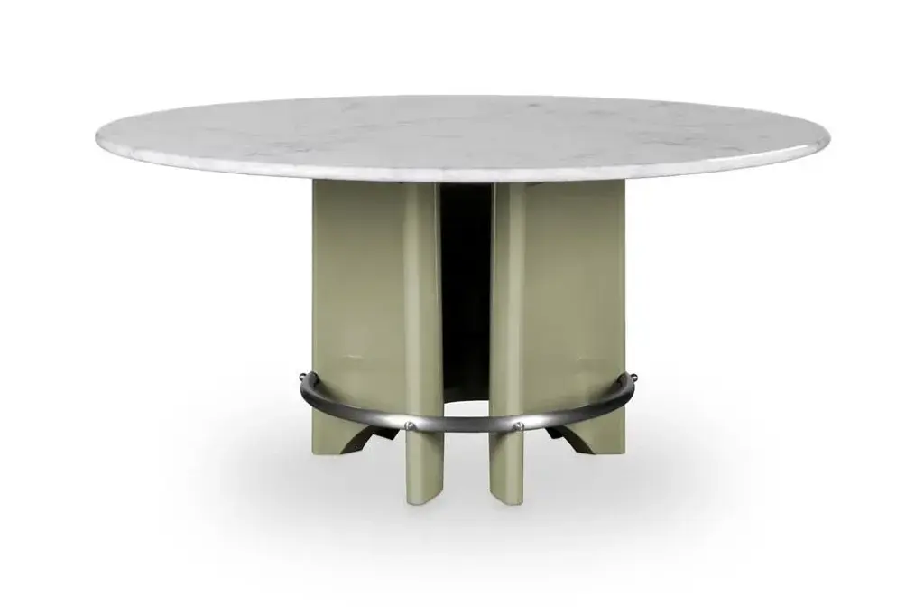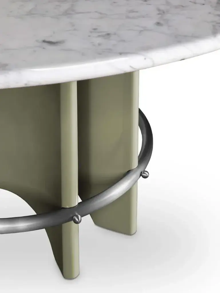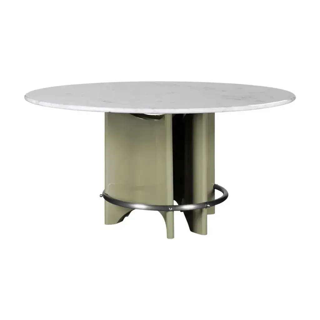 Meyer table by royal stranger dimensions: d 160 x w 160 x h 75 cm. Materials: carrara marble with polished finish, lacquered with glossy finish base, stainless steel ring. Available in: table top: carrara marble, nero marquina, estremoz, rose estremoz, guatemala green and emperador with polished or honed finish. Base: in walnut or sottsass wood veneers, in red, orange or grey colors, or lacquered in all ncs/ral colors, or in gold, copper and silver leaf, with glossy or matte finish. Ring: available in brass, stainless steel and copper with polished or brushed finish, or lacquered in all ncs/ral colors with matte or glossy finish. Meyer table takes inspiration from oscar niemeyer's notable work. Inheriting from its sinuous shapes and horizontal lines, it conveys a swell, stable aesthetic. Its rounded tabletop brings a mature presence to the room. It rests on a set of three coordinated curved legs that connect it to the ground, while being encircled by a metallic rim. That latter, adorned with small sphre-shaped details, adds a visual sense of stability to the design, while borrowing from its rounded shapes. Meyer table's eloquent discourse flows from architecture to furniture scale. Royal stranger is an exclusive furniture brand determined to bring you the best unique pieces of art and design. Fusing design, art and the best craftsmanship, they strive to deliver the best state of the handmade art furniture. The design team works every day to create meaningful products that represent values such as passion, function, aesthetics and know-how. Values that are meant to represent royal stranger’s dna. This dedication is present at all stages of production and the combination of craftsmanship and innovative design contributes to our final purpose: to produce certified high-quality products, made with passion and expertise and using royal materials such as gold leaf, rich woods and high quality lacquers. It was in 2013, as an architects, that sofia santos & rui santos started to push the boundaries of innovation in several retail design concepts for some of the best stores in portugal. This will has always been present in their work, and that’s how the brand was born. This piece is attributed to the mentioned designer/maker. It has no attribution mark and no official proof of authenticity, however it is well documented in design history. I take full responsibility for any authenticity issues arising from misattribution