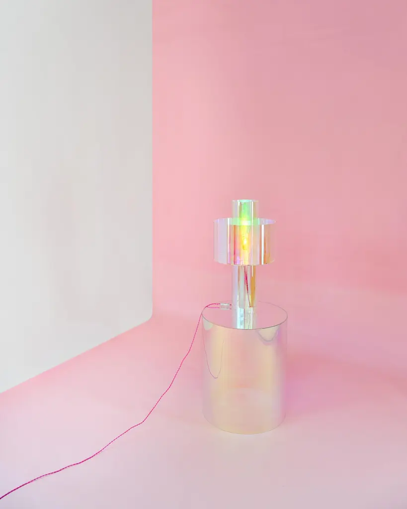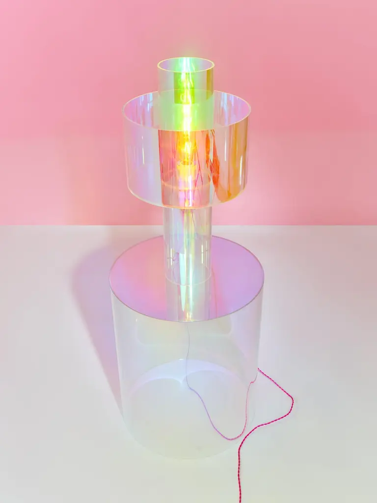 Miami Tube Side Table by Brajak VitbergMaterials: Plexiglass and dichroic film.Dimensions: Ø 50 x H 60 cm.This table is customizable and available in different dimensions. Colors of the table change according to the surrounding. Please contact us.Brajak Vitberg is an art and design studio, founded by two architects from Ljubljana, Slovenia in 2018. We are striving to design craft elements and make them timeless through experimental designing process. The studio creates a range of products from handmade and limited small series to one piece unique products, inspired by materials and forms that create incomplete perfection.
