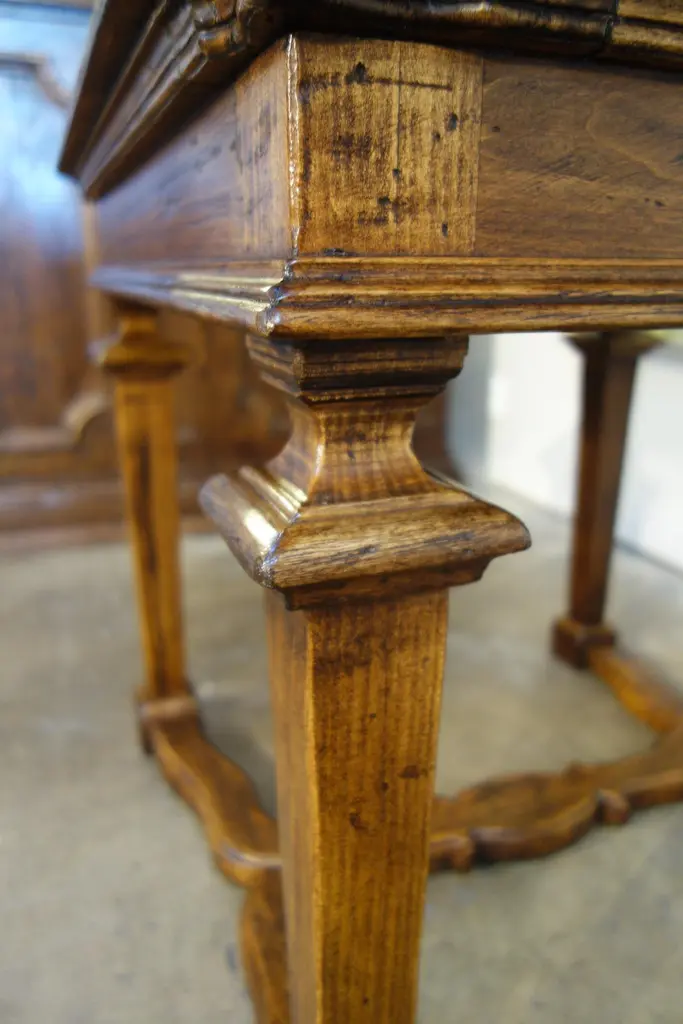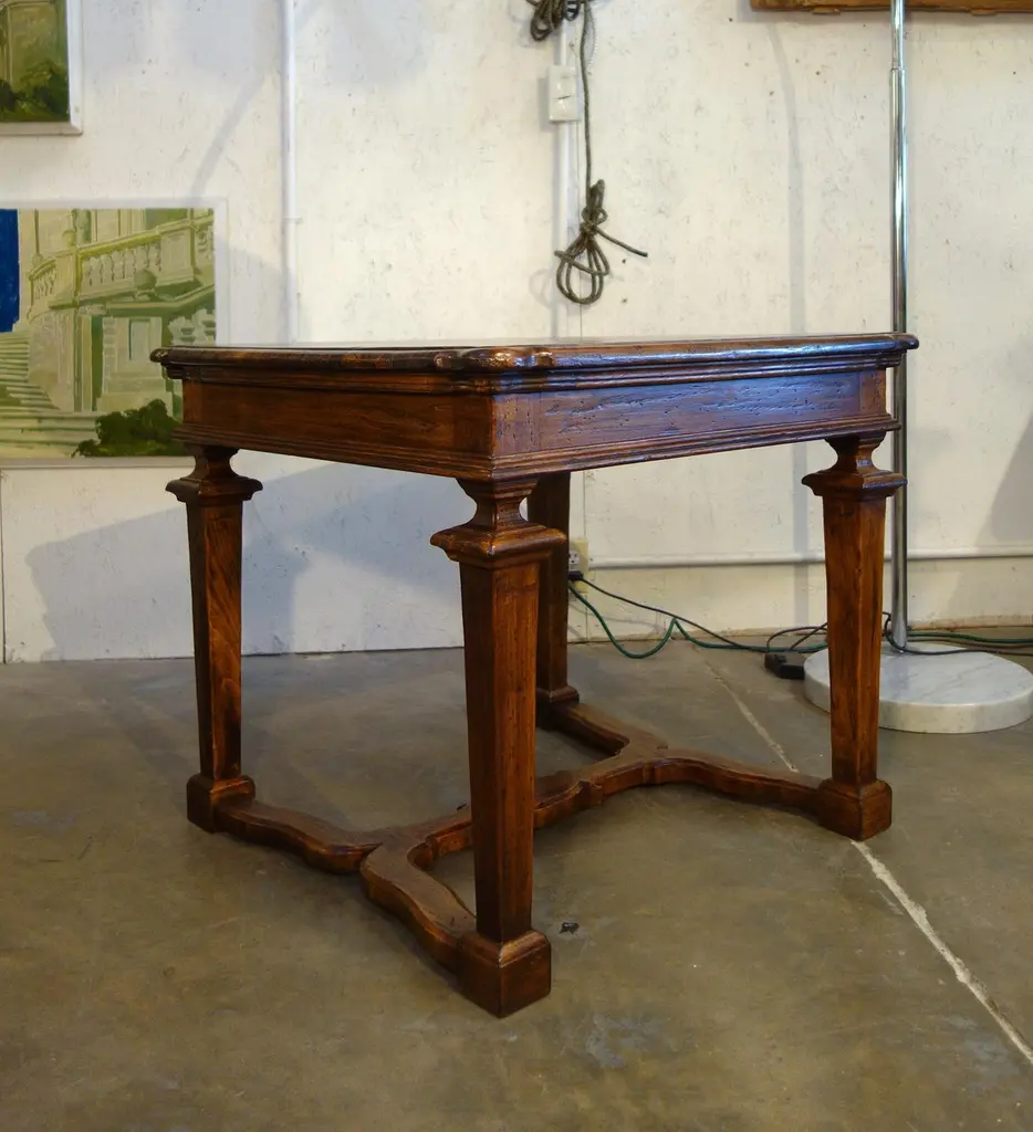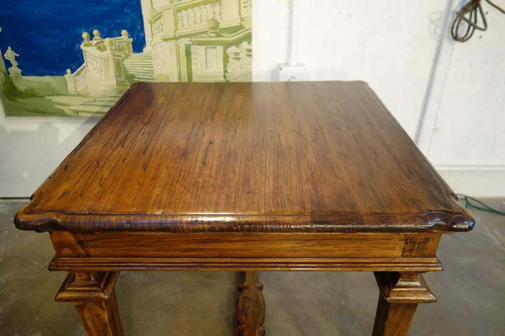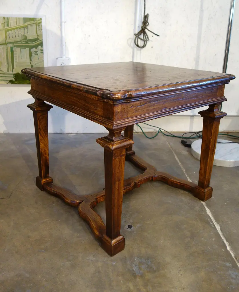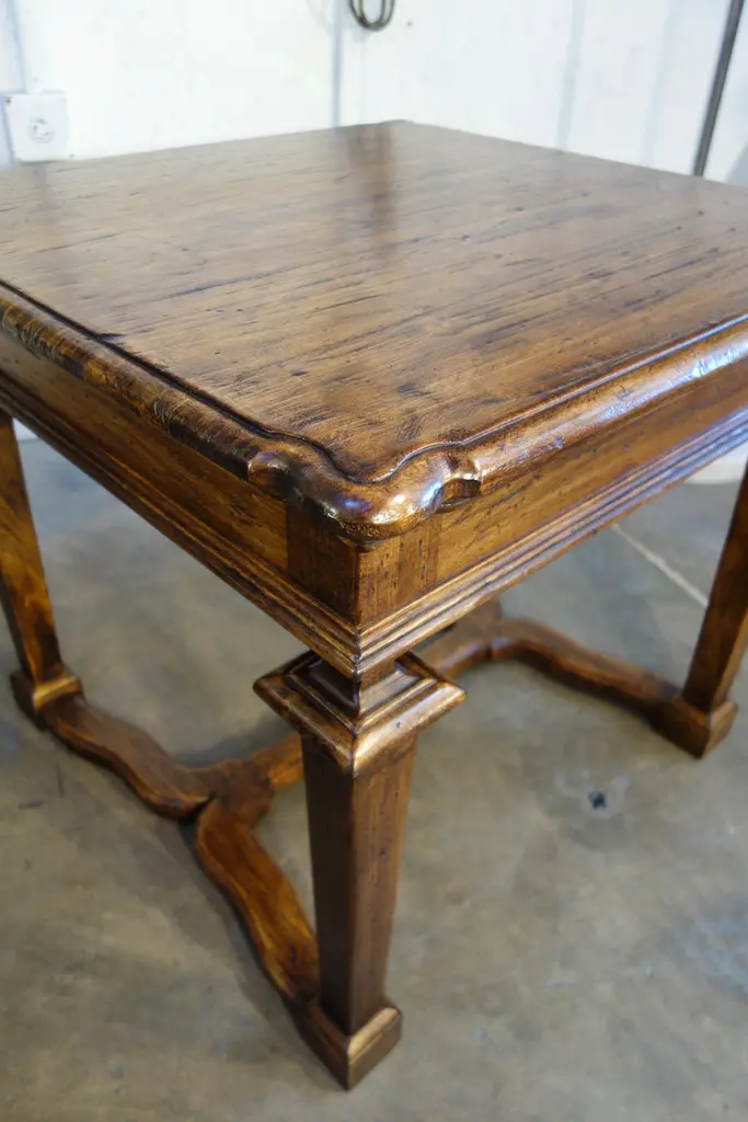 The “Portofino” table line style is one of a splendid selection of Tuscan/Mediterranean, Rustic, Primitive, Farmhouse & Classic table styles. This Portofino side/end/occasional table may be CUSTOM built - to your preference in size, color & patina. Apron drawer option available.“Portofino II” side/end/occasional table with hand-tooled solid hardwoods, Style 1-565-FL:Measures: 30”L x 30”W x 26”HSee also our slim version Portofino Mid Century table line.Also available to custom order:Optional finishes include:- Natural blonde shellac- Classic shellac- Espresso Dark stain shellac - Moro blackened shellacGloss, satin & distressed painted finishes also available to orderAlso available in Old Chestnut, Poplar, or Walnut with smooth or brushed grain finish.Leg style alteration: “Portofino” table line is available in the thick leg version as shown on the attached end table photos, and we also have the original style with a slender, leaner leg ……”Portofino Mid Century” (see separate listing).Bellini’s Old World Collection styles are adapted from Renaissance designs from the 15th to 19th centuries. For over 40 years, our craftsmen have been recovering & finishing old Italian hardwoods. Their lives have been immersed in the craft of antique furniture in traditional Mediterranean styles. Each piece is artfully handcrafted with aged Italian solid hardwoods and fine-tooled hardware, built to your custom needs by quote in size, configuration, color & patina.