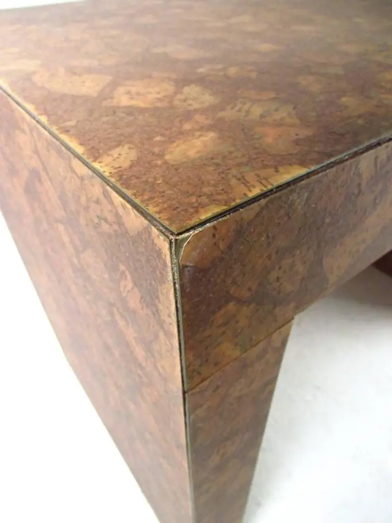 Mid-Century Modern Burl Cork-Top Parsons Style Side Table