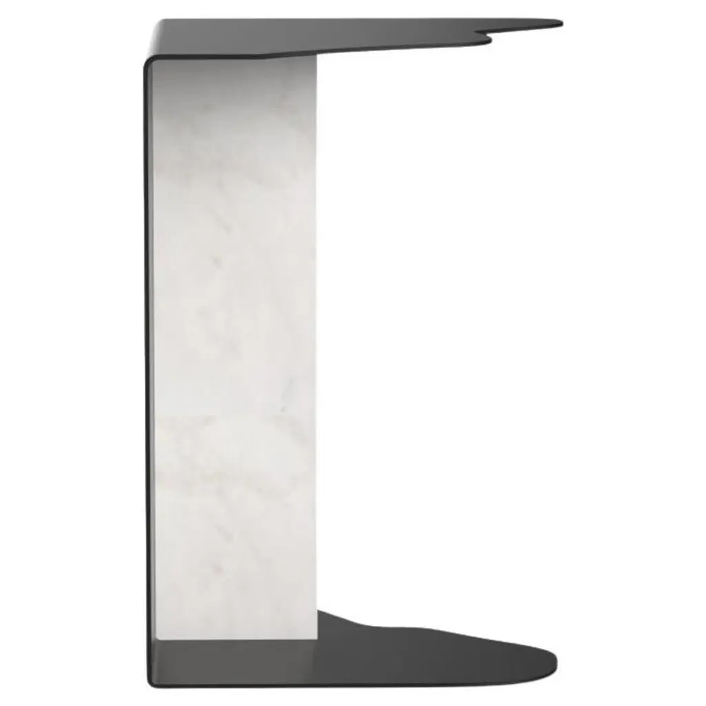 Mid-Century Modern Raw Side Table, Contemporary Collection, Handcrafted in Portugal - Europe by Greenapple.The Raw marble side table celebrates the interplay between refined craftsmanship and nature’s raw beauty. Its organic silhouette, inspired by the unpredictability of natural forms, is paired with noble materials to create a piece where simplicity emerges as the ultimate form of sophistication. With its sculptural presence and timeless design, the Raw marble side table is the perfect eye-catching piece for contemporary interiors.The Raw side table features a metal structure lacquered in satin black.Base block in polished Calacatta Bianco marble in white-cream tones.The Raw side table can be customized in terms of dimensions, materials and finishes. Raw Side Table Material CodesFI007 Lacquered, Black, SatinST008 Calacatta Bianco marble, Polished, White-Cream, Gloss