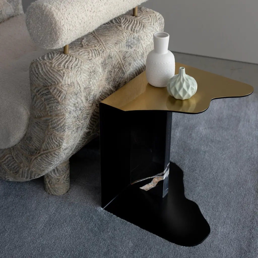 Mid-Century Modern Raw Side Table, Contemporary Collection, Handcrafted in Portugal - Europe by Greenapple.The Raw marble side table celebrates the interplay between refined craftsmanship and nature’s raw beauty. Its organic silhouette, inspired by the unpredictability of natural forms, is paired with noble materials to create a piece where simplicity emerges as the ultimate form of sophistication. With its sculptural presence and timeless design, the Raw marble side table is the perfect eye-catching piece for contemporary interiors.The Raw side table features a metal structure with an outer shell crafted from polished mirrored stainless steel and an inner shell lacquered in satin black.Base block in polished Calacatta Bianco marble in white tones with cream veins.The Raw side table can be customized in terms of dimensions, materials and finishes. Raw Side Table Material CodesFI032 Lacquered, Varnished, Black, High-GlossST008 Calacatta Bianco marble, Polished, White-Cream, GlossME001 Stainless Steel, Polished, Mirrored-Steel, High-GlossHandcrafted in Portugal - Europe by GreenappleUnique by design, Crafted by peopleGreenapple transforms contemporary spaces into exclusive narratives of design and craftsmanship. From custom-made furniture to bespoke interiors, each creation is a timeless work of art, shaped by master artisans who honor centuries-old techniques.Founded in 2005 by Sérgio Rebola and Rute Martins, Greenapple has earned global recognition among high-end clientele and leading design firms. While Rute designs each unique piece, Sérgio ensures uncompromising quality from design to production and from production to your home. We provide a seamless experience, offering short production lead times, worldwide delivery within 7 to 10 days, and white-glove service upon request.For U.S. clients, we can handle customs clearance, and offer white-glove service as well upon request.End Table, Accent Table, Drink Table, Utility Table